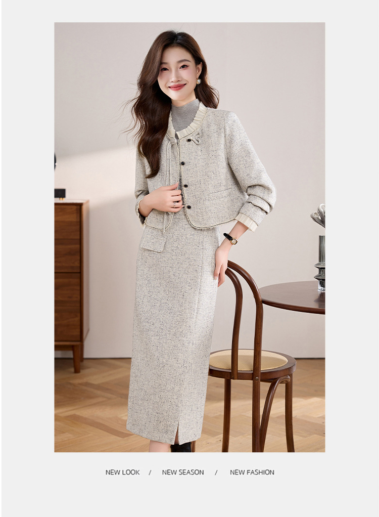 HR LSNY2453法式小香风套装时尚气质减龄高腰显瘦半身裙两件套 商品图3