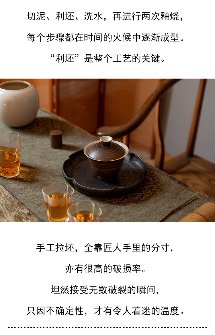茶香记 粉引手拉春夜盖碗 手作器物 古拙质朴 自然耐看 简约实用