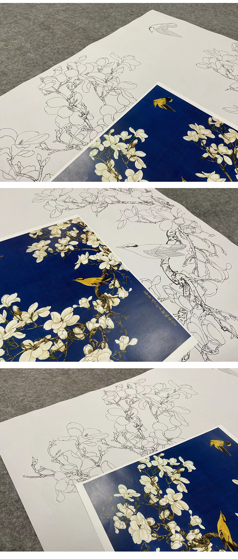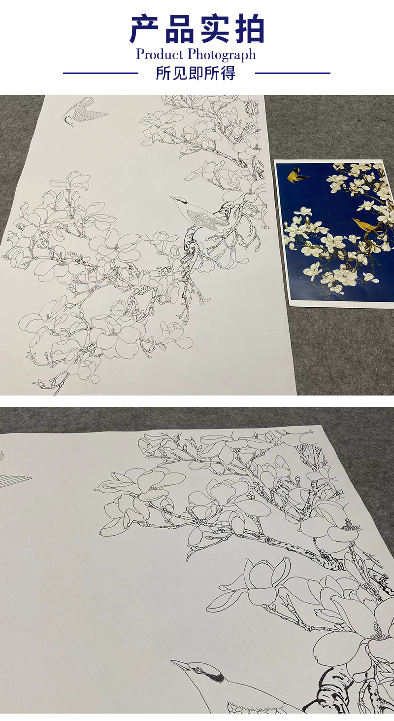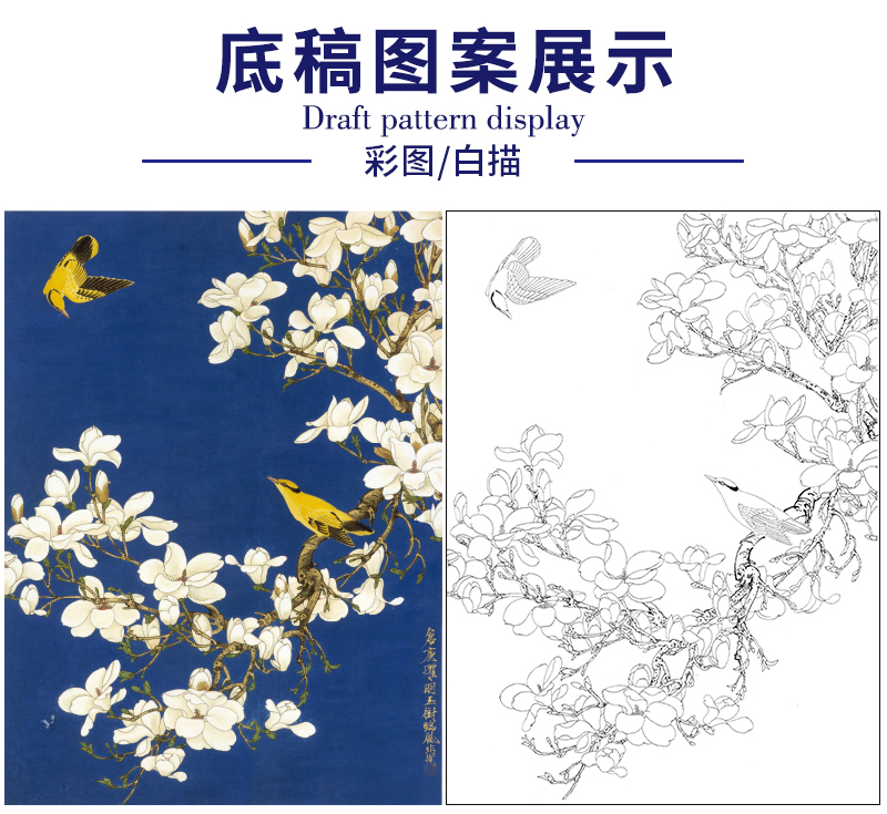 于非闇工笔花鸟白描底稿-玉兰花黄鹂-斗方小品册页-YF87