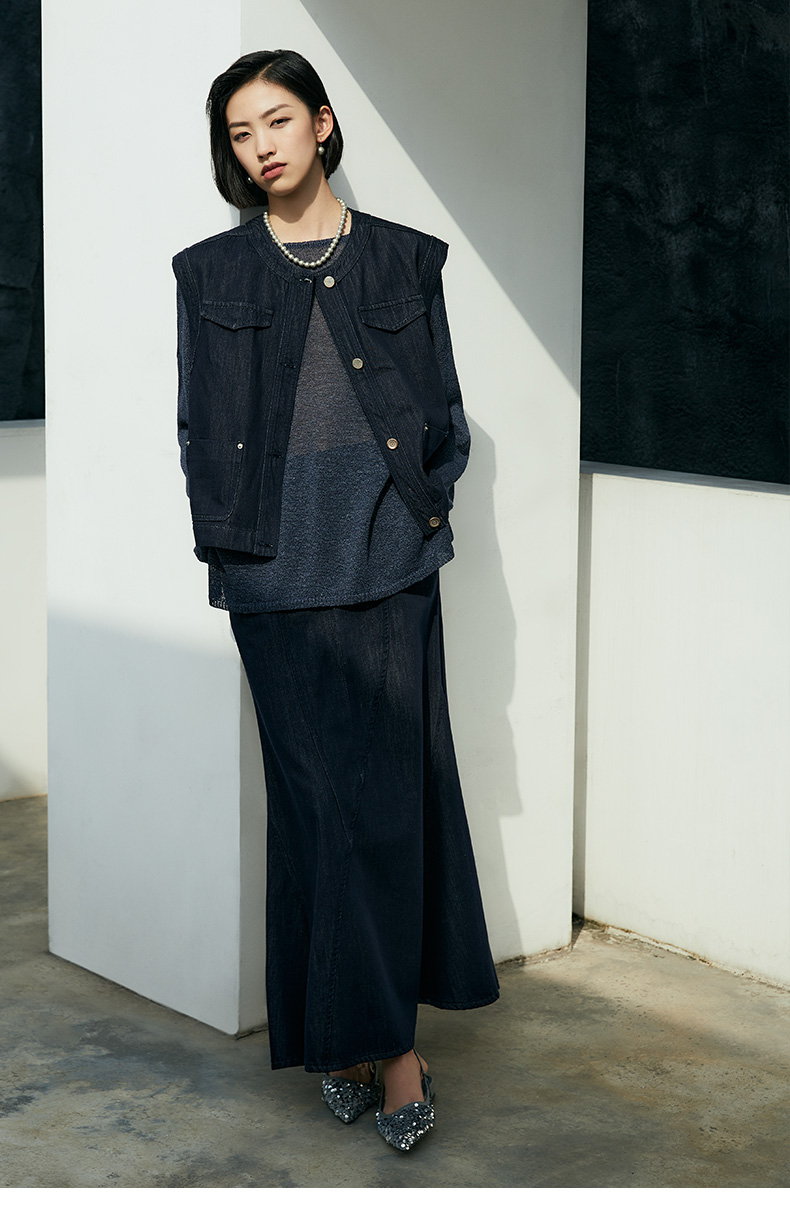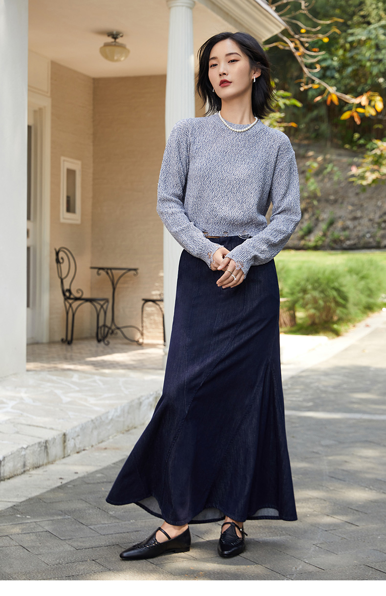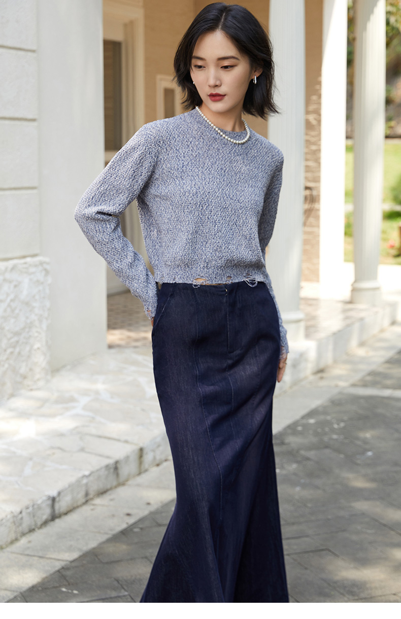秋季新款高腰牛仔鱼尾半身裙 修身显瘦中长款包臀裙