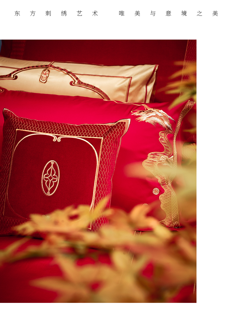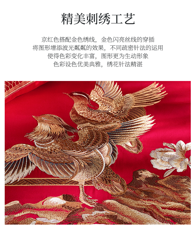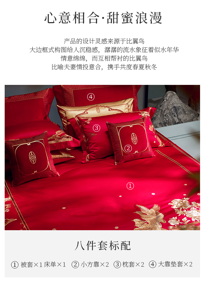 whinny/惠谊 新中式锦缎刺绣婚庆八件套 比翼双飞