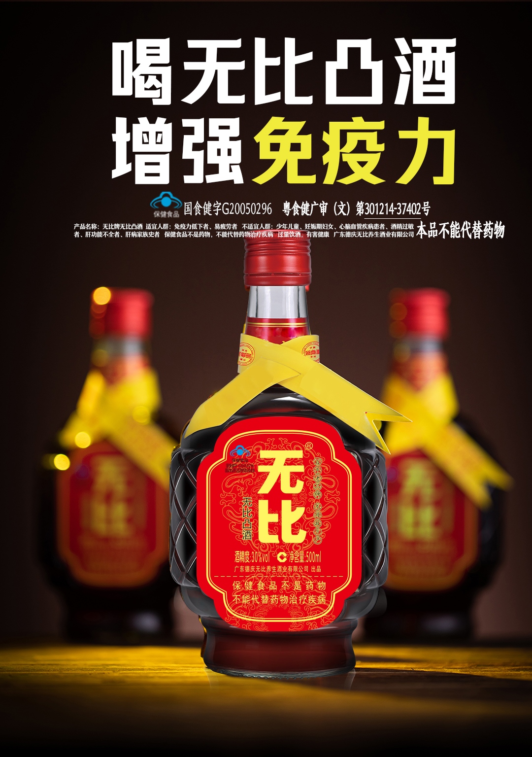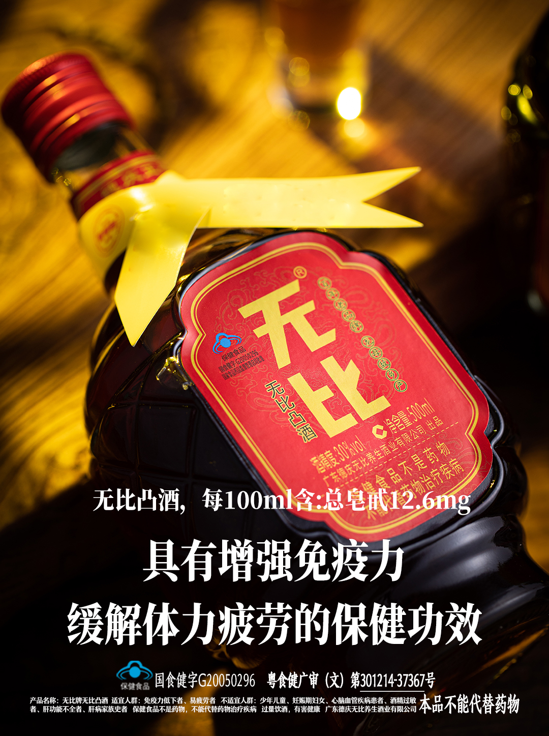 无比凸健字号巴戟酒 30度 500ml*12瓶 轻口味保健酒 整箱装