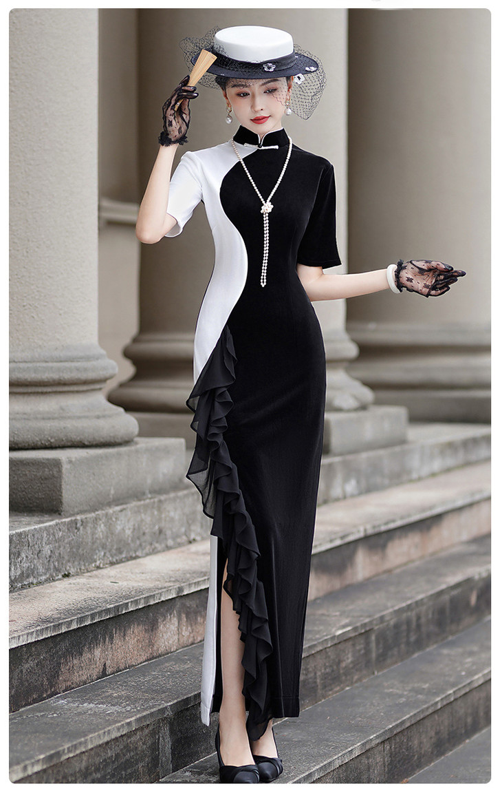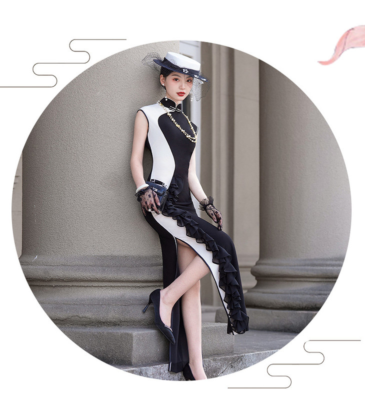 老上海改良版气质显瘦年轻款复古荷叶边长款旗袍NL