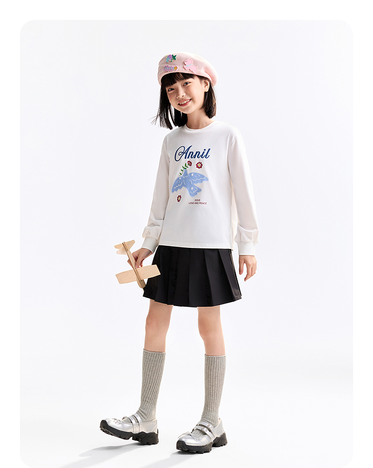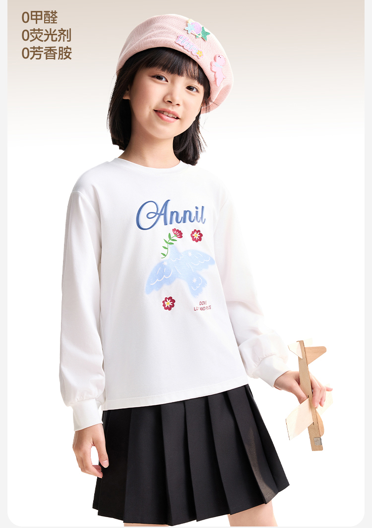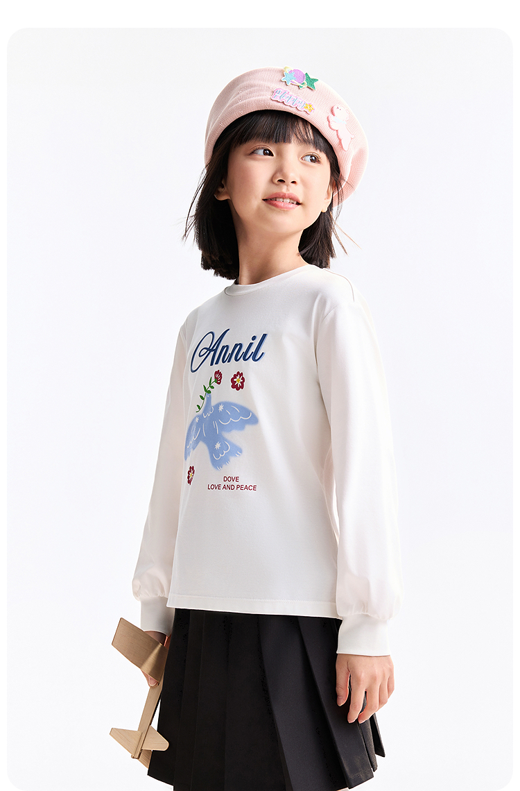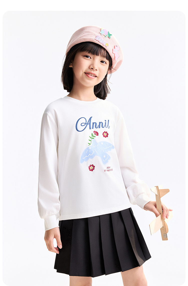 女童圆领长袖针织衫秋季新款安奈儿童装EG531535