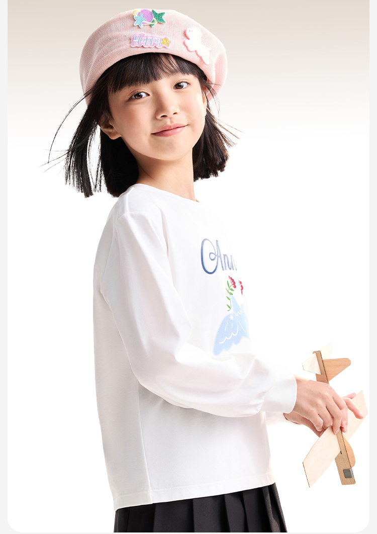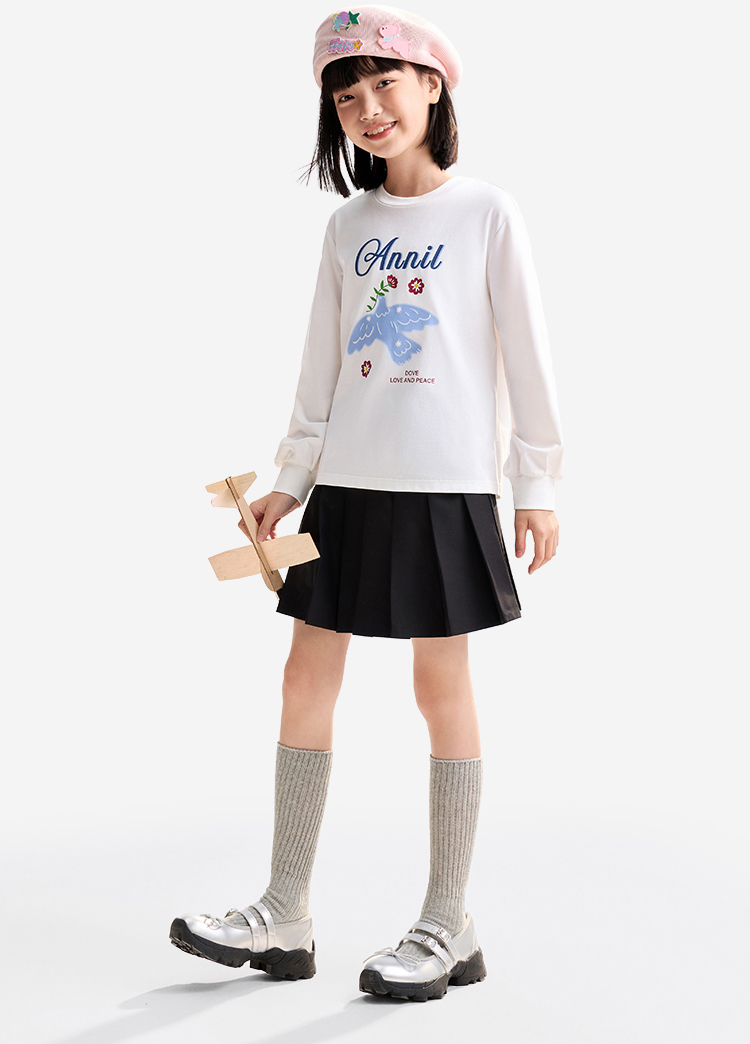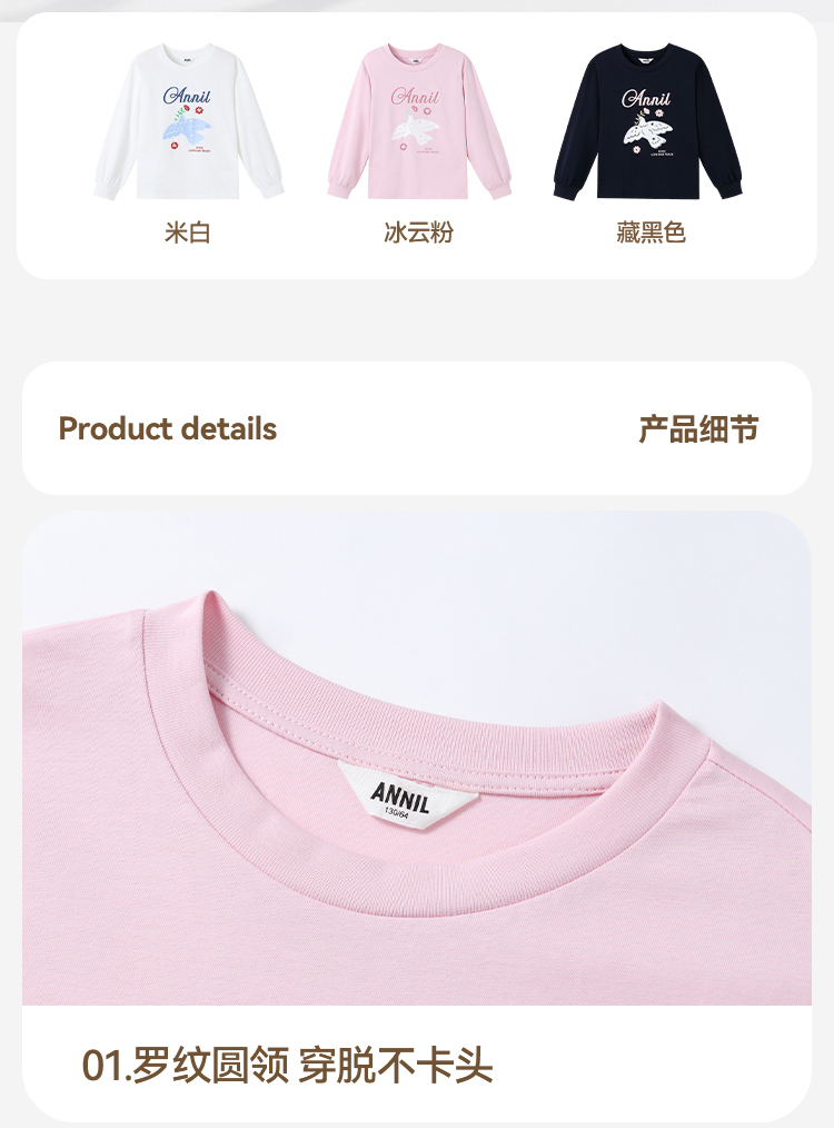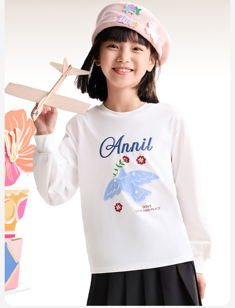 女童圆领长袖针织衫秋季新款安奈儿童装EG531535