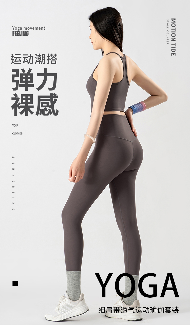 跃牌【蚂蚁运动】系列 细肩带瑜伽背心高腰提臀瑜伽裤女瑜伽套装X1366+K3338