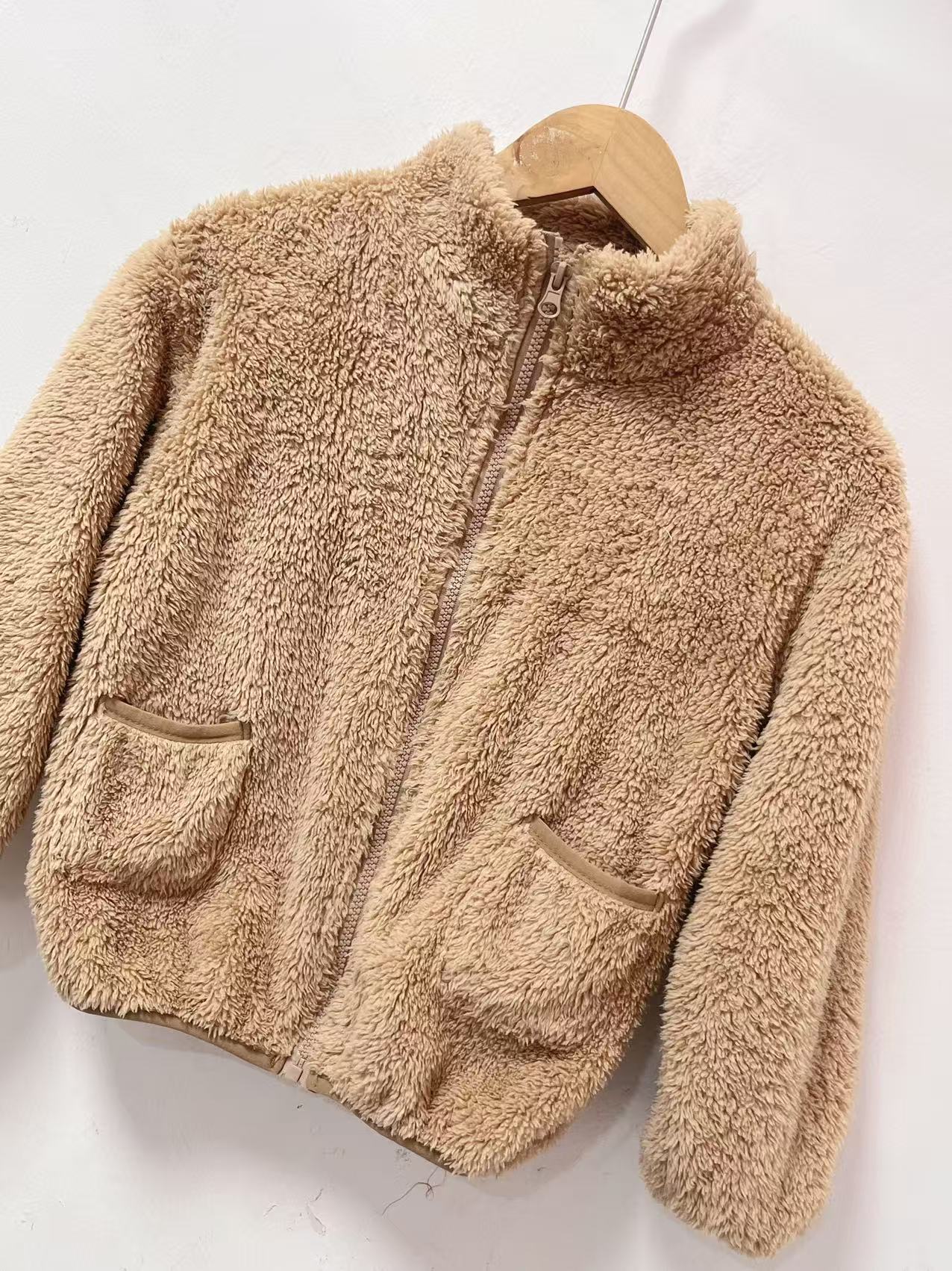 【孤品捡漏】G220童装卡其拉链颗粒毛毛衣-喜出