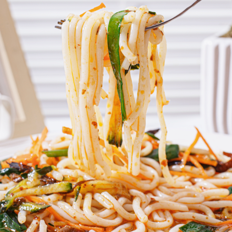 开水烫一下或者煮一分钟就好,倒入调料搅拌均匀即可享用,几分钟就出餐,便捷简单又美味~