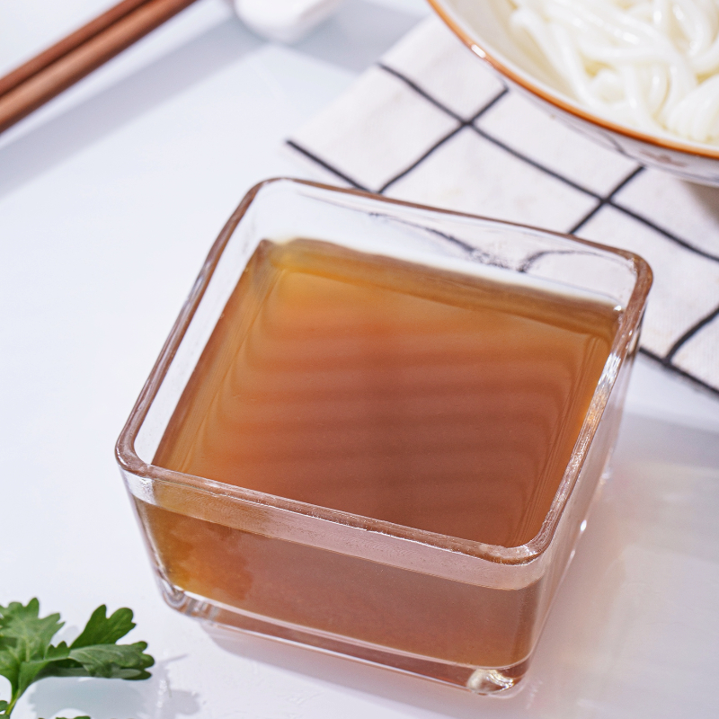 酸甜口米线汁是这一碗凉拌米线的灵魂,熬制过程复杂,非得要经验老道的师傅亲自调制,方能将口味平衡至最佳,晶莹透亮的汤汁空口喝都那么舒服。