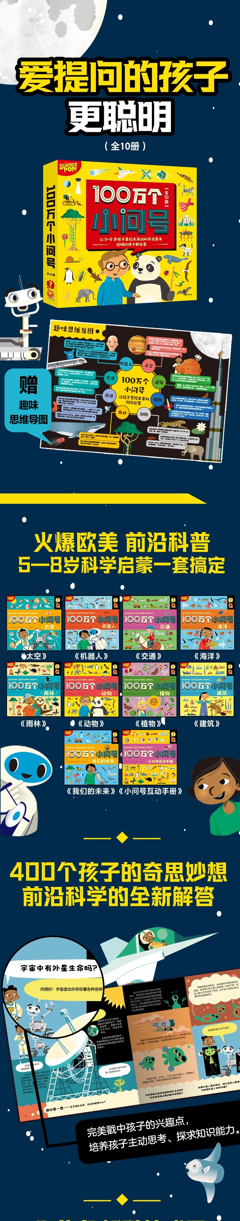 100万个小问号 全10册 5-8岁 萨莉斯林斯特等著 爱提问的孩子更聪明 含小学科学课十大版块 让孩子一上学就成为妥妥的小学霸