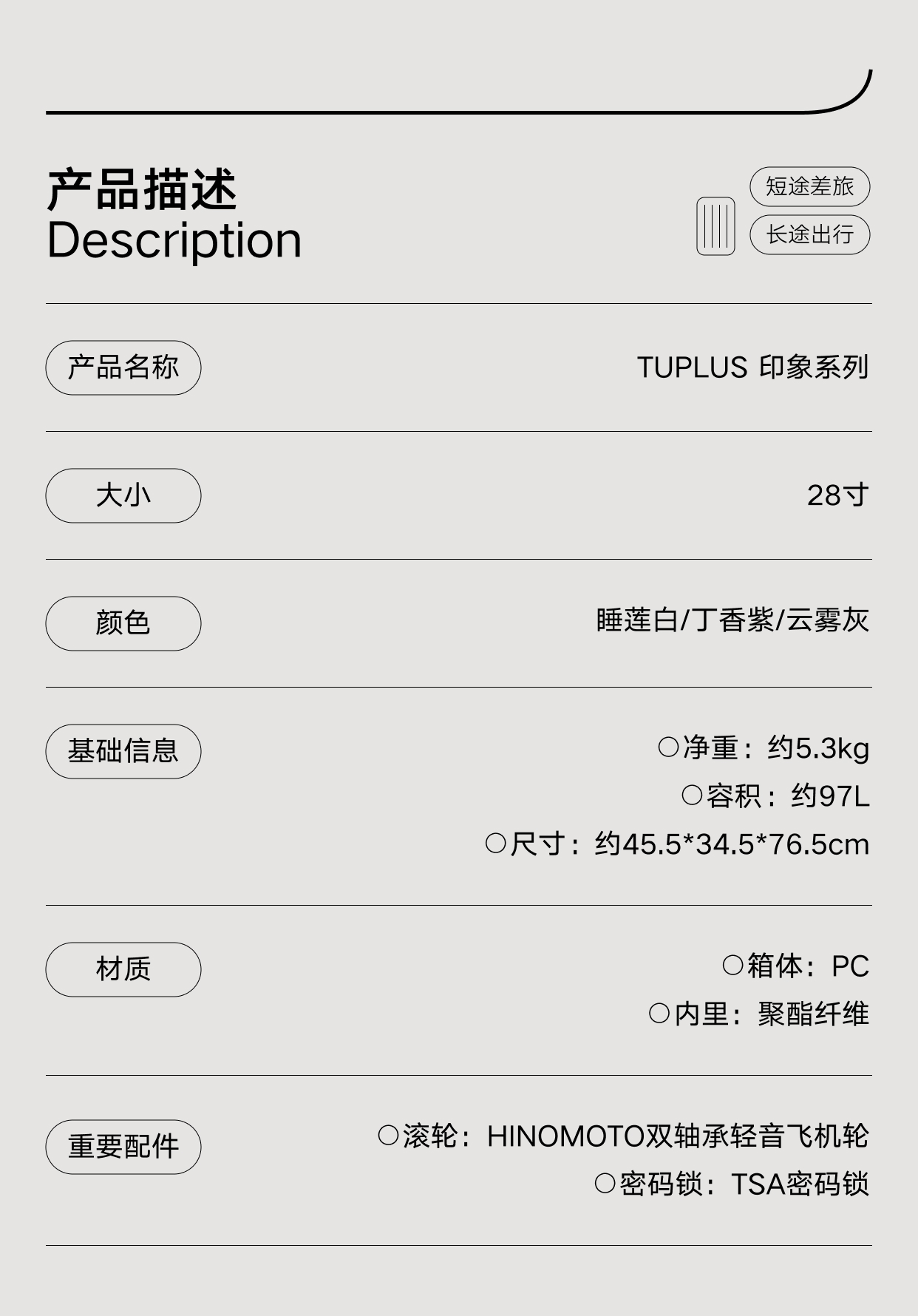 TUPLUS途加【印象经典&plus】28寸宽拉杆旅行箱