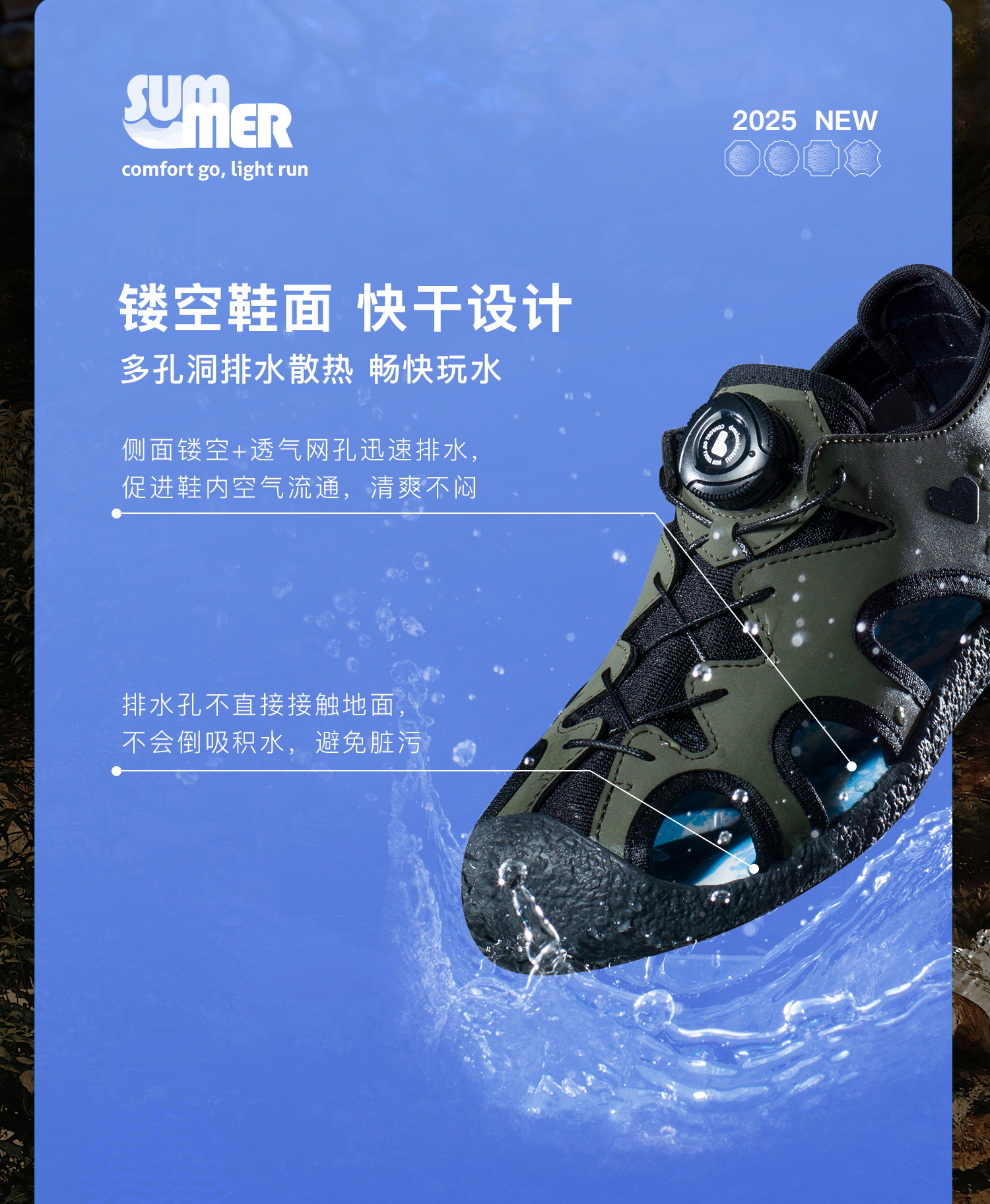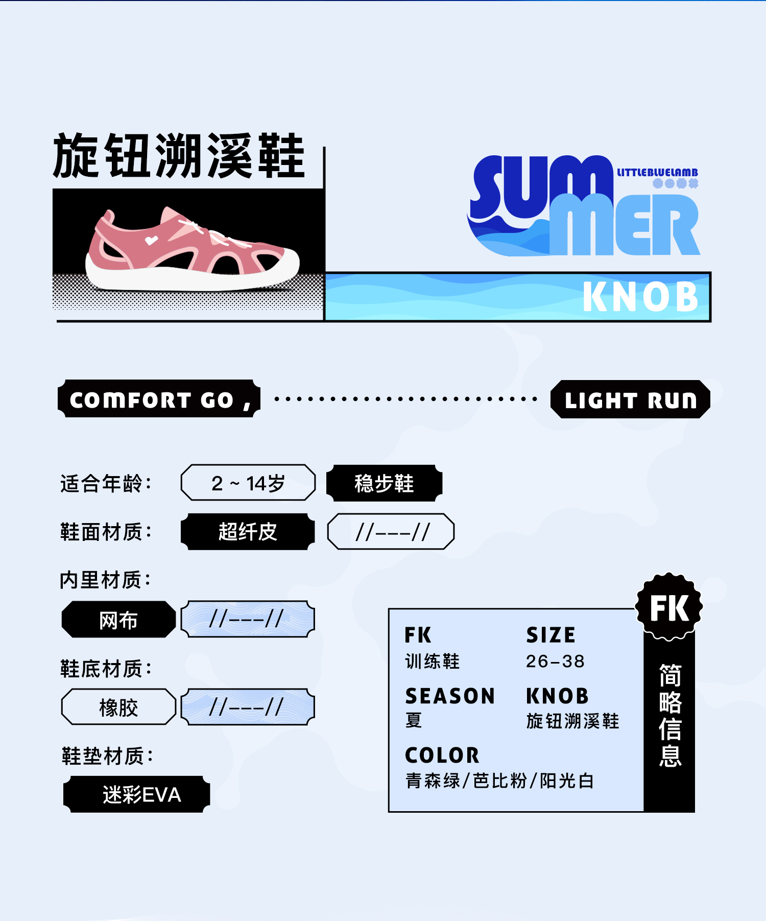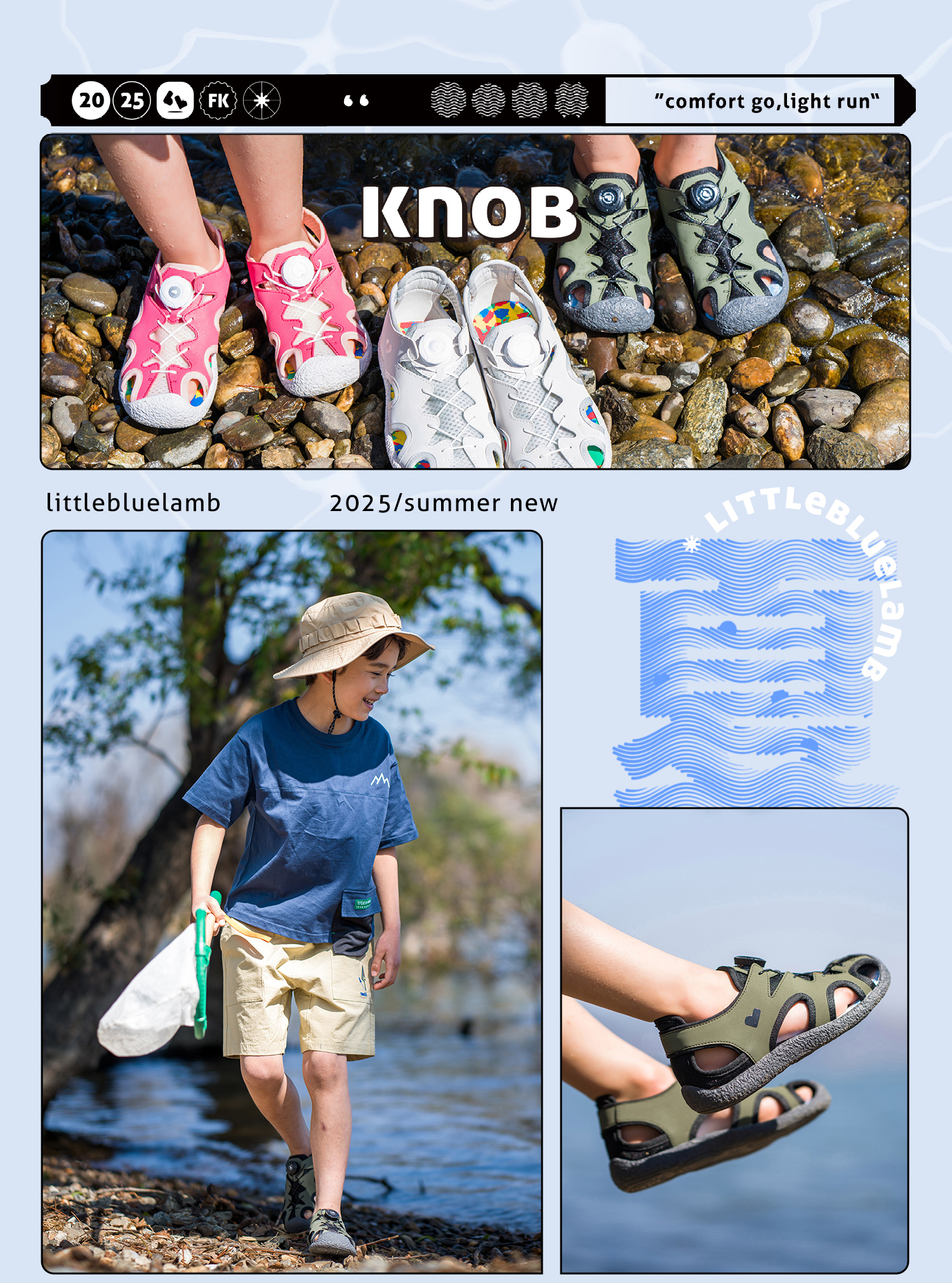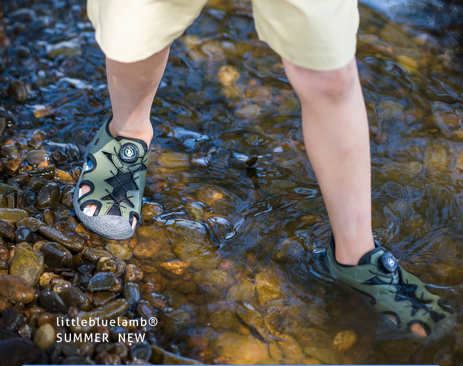 TY- 小蓝羊25夏季新款防滑软底凉鞋舒适包脚训练鞋男女童旋钮踩水鞋-旋钮溯溪鞋