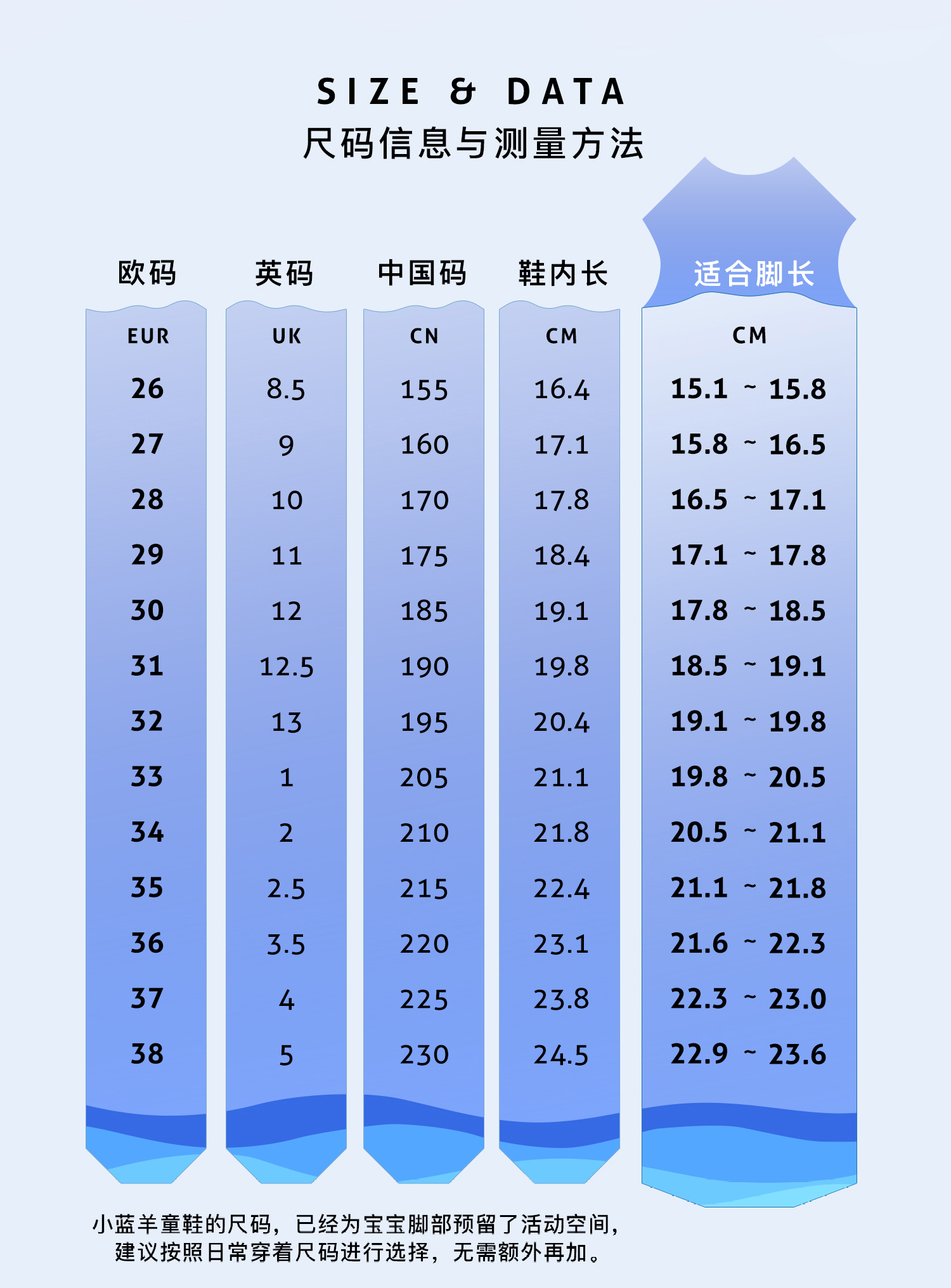 【推荐尺码】根据实际脚长+1cm左右选择尺码
