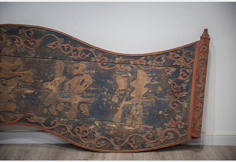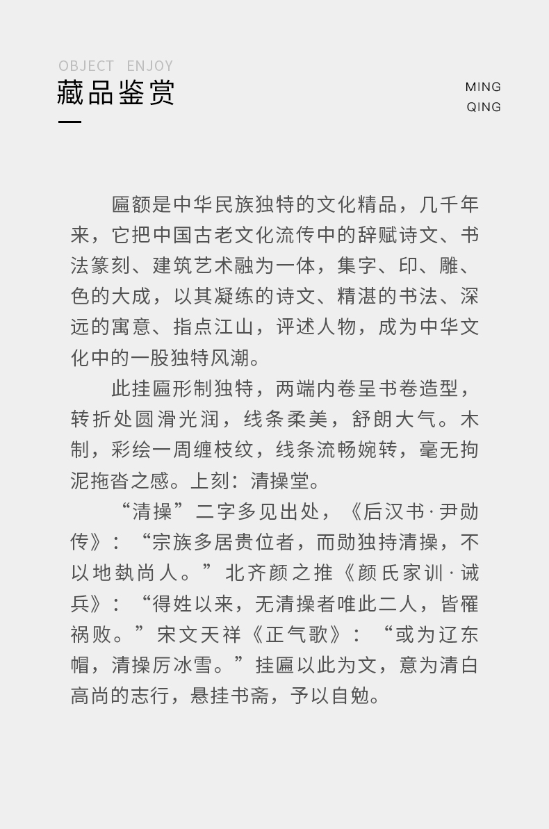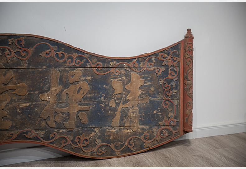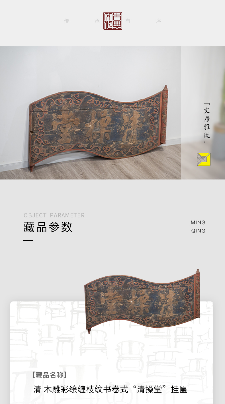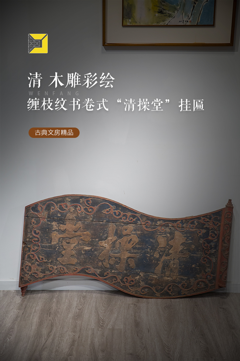 清 木雕彩绘缠枝纹书卷式“清操堂”挂匾