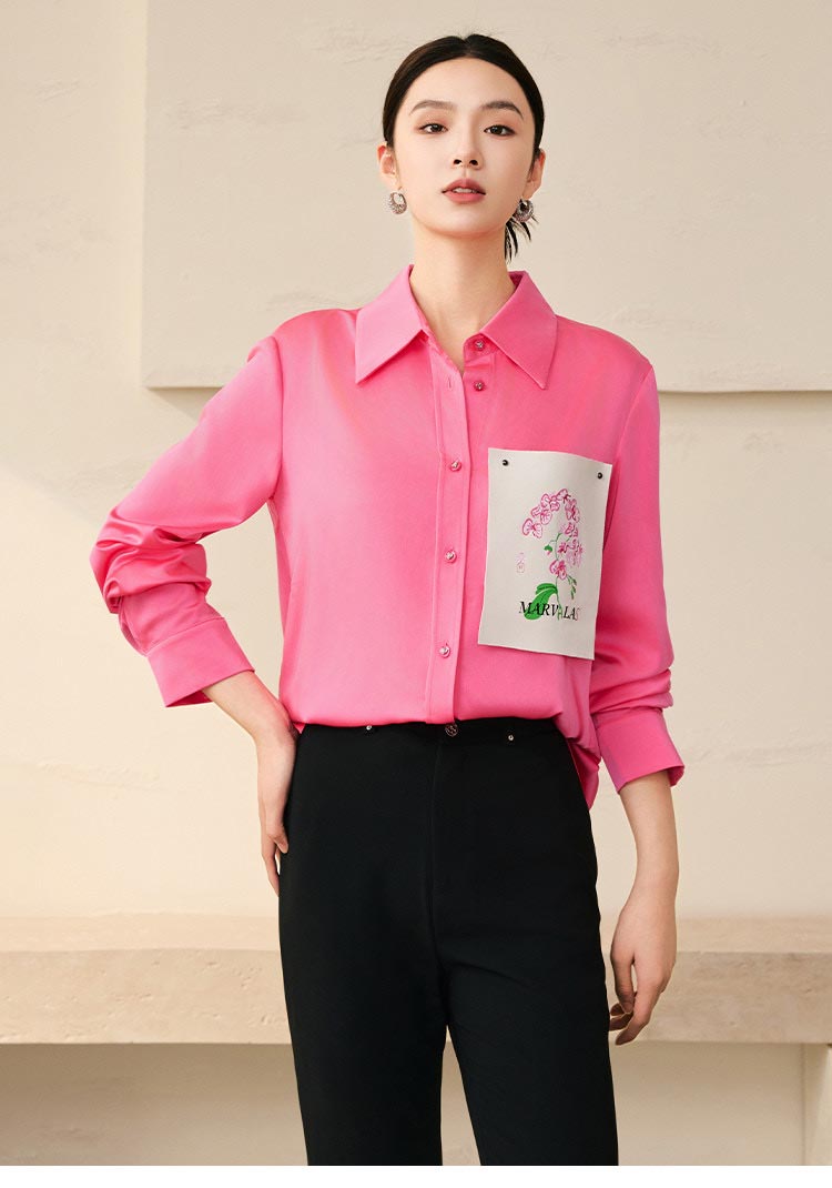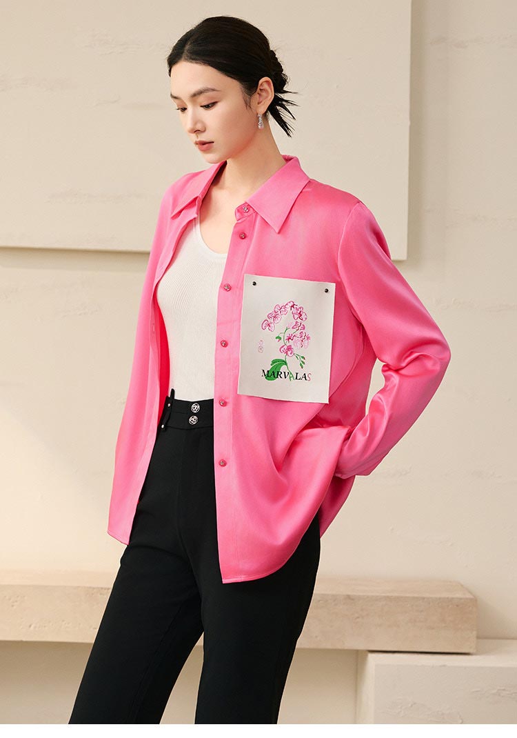 洛诗琳63203时尚翻领廓形衬衫2025春季新款印花设计感上衣8270