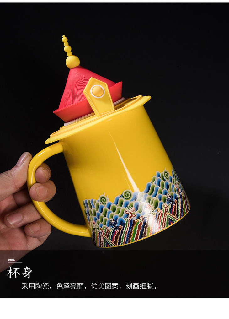 中国风咖啡杯陶瓷杯茶杯龙凤马克杯子创意皇帝皇后龙帽凤冠硅胶盖