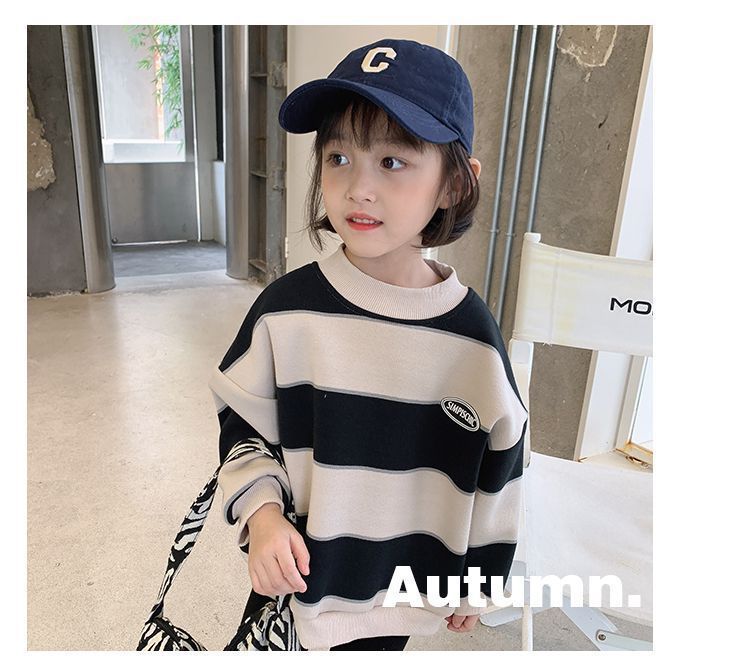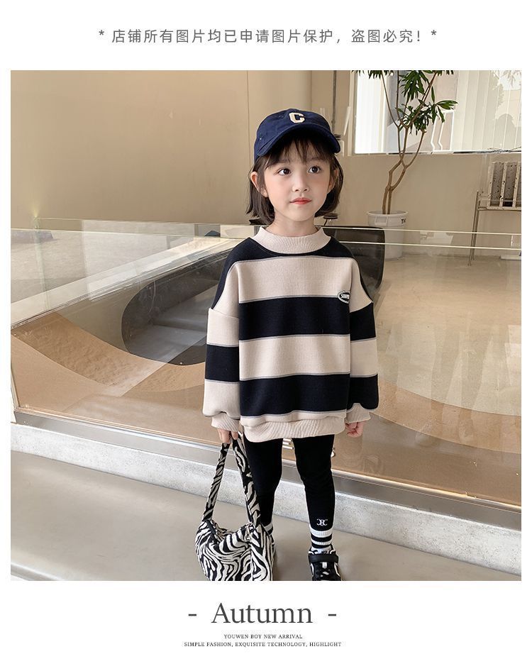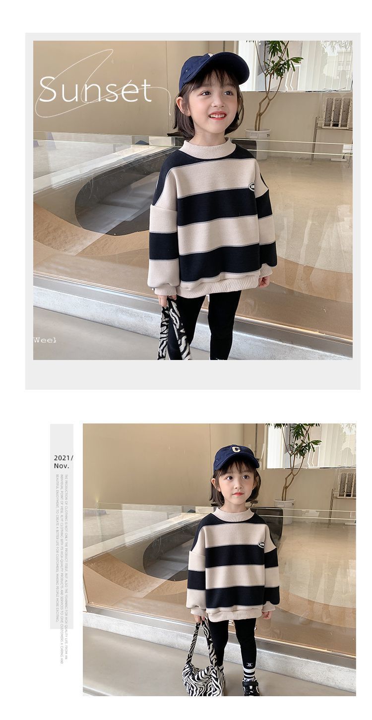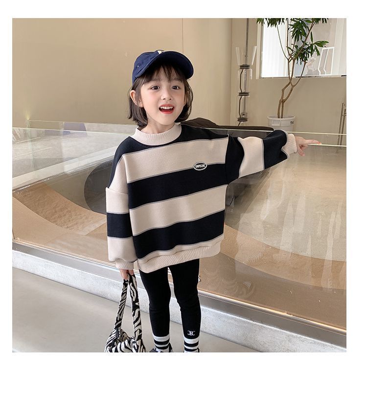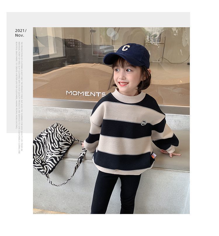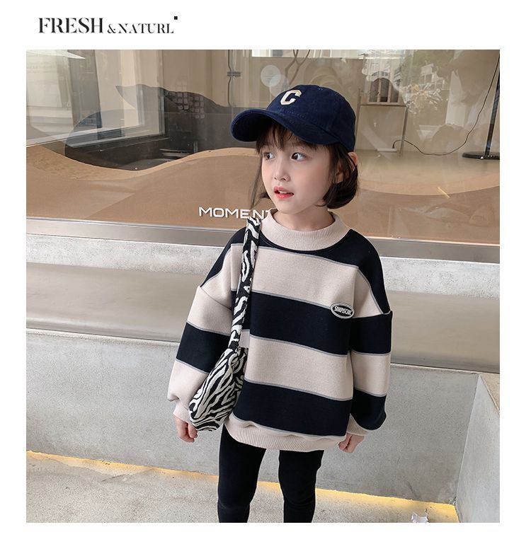 【条纹洋气又百搭!舒适保暖】百搭儿童装宝宝秋冬季上衣卫衣童装,温暖舒适又时髦;温暖守护 绽放新时尚,条纹元素勾勒出小公主的俏丽身姿lm
