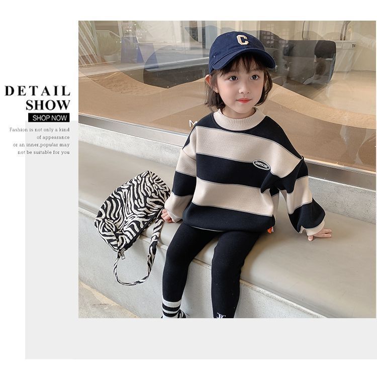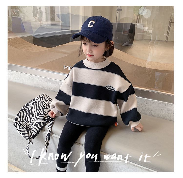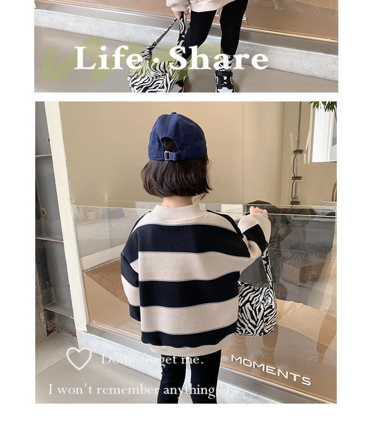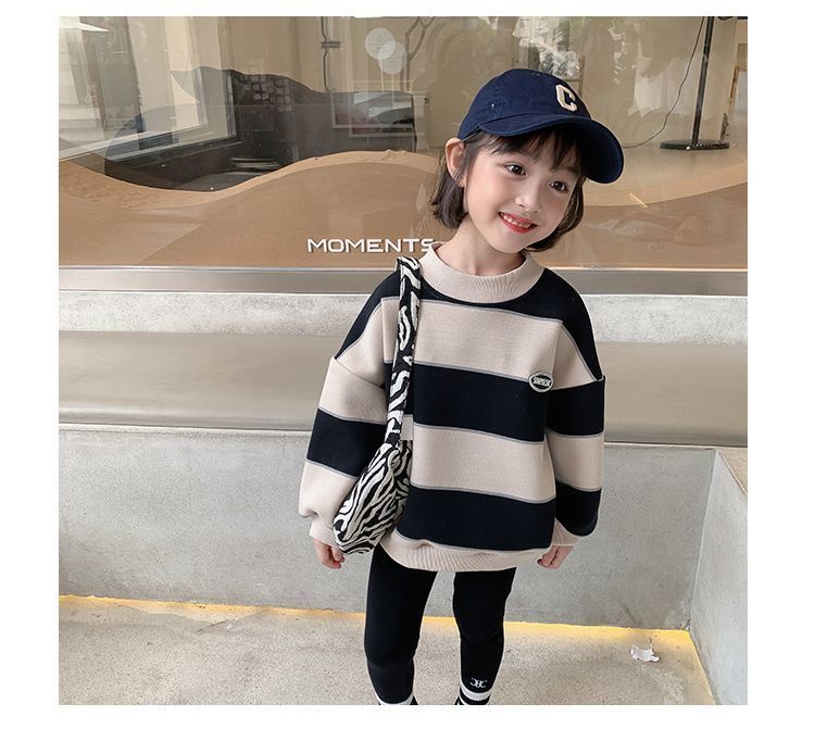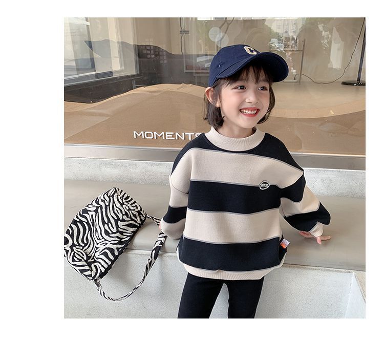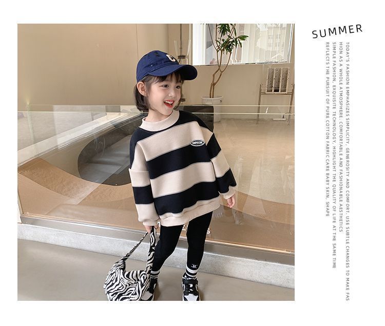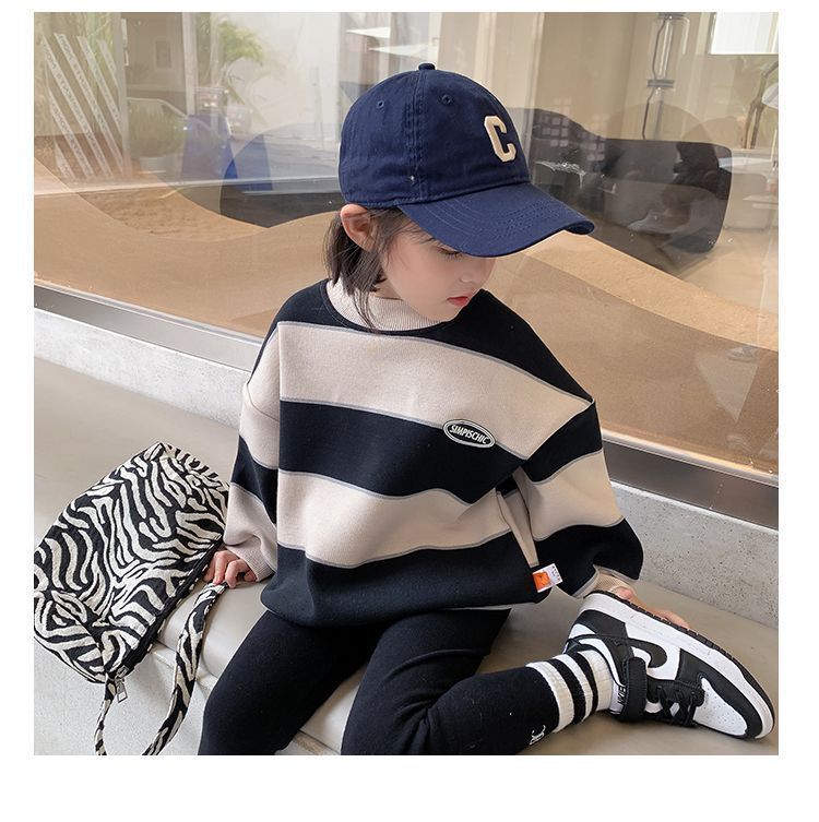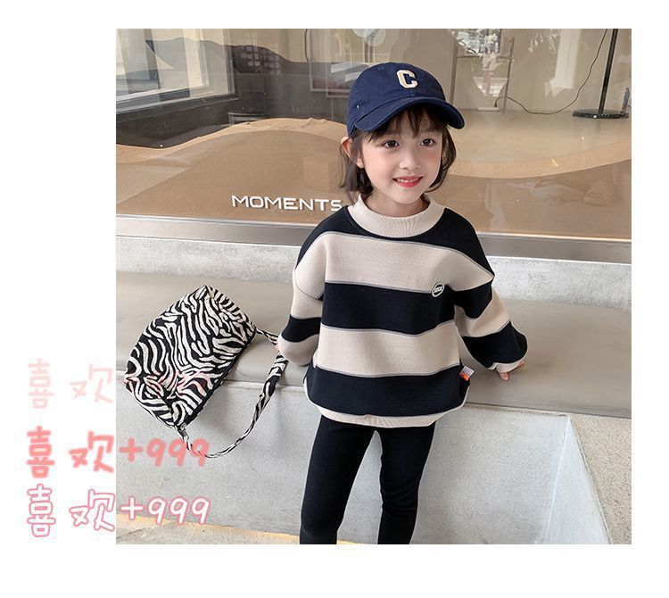 【条纹洋气又百搭!舒适保暖】百搭儿童装宝宝秋冬季上衣卫衣童装,温暖舒适又时髦;温暖守护 绽放新时尚,条纹元素勾勒出小公主的俏丽身姿lm