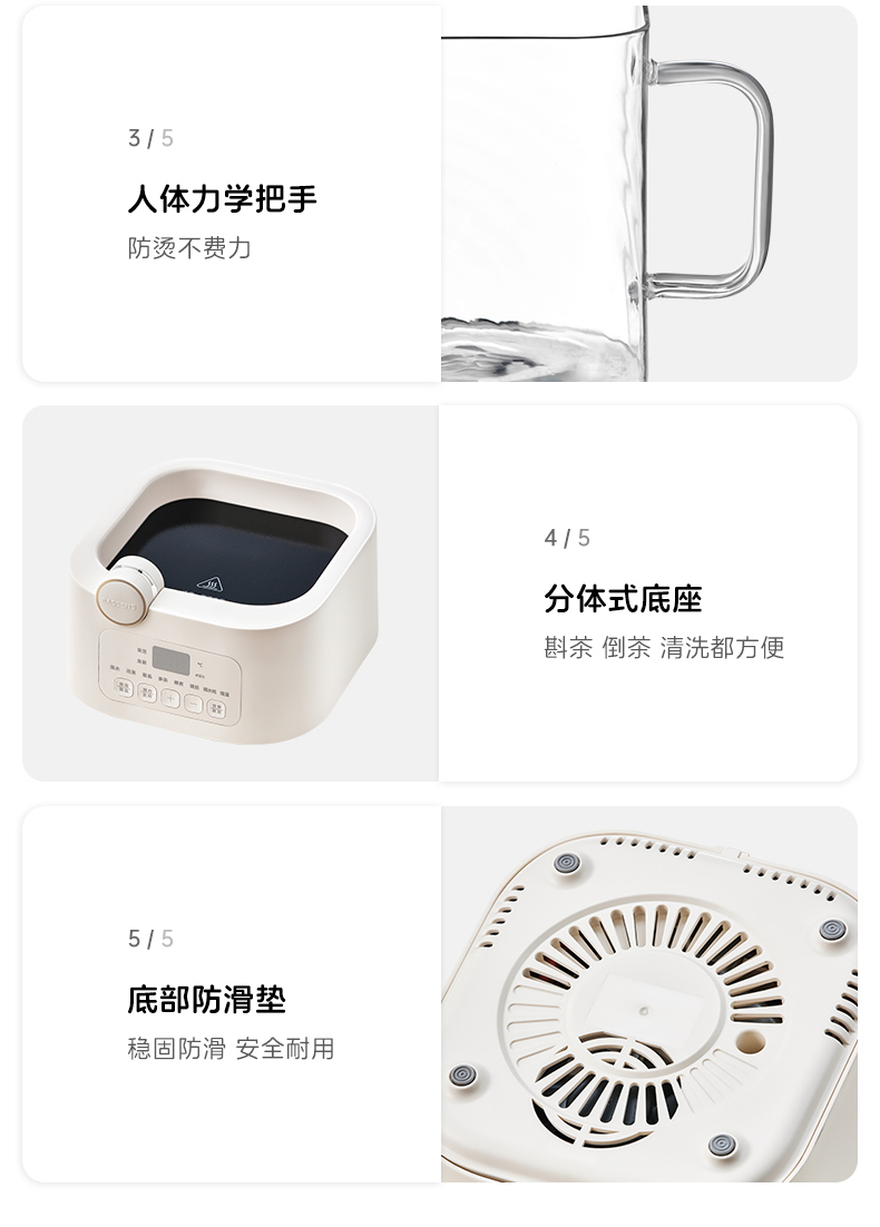 【全新升级第三代】高硼硅全玻璃壶 | 巴森小方炖养生壶BS-D5 八大炖煮 多功能电陶黑晶发热盘 恒温杯垫 容量1.2L
