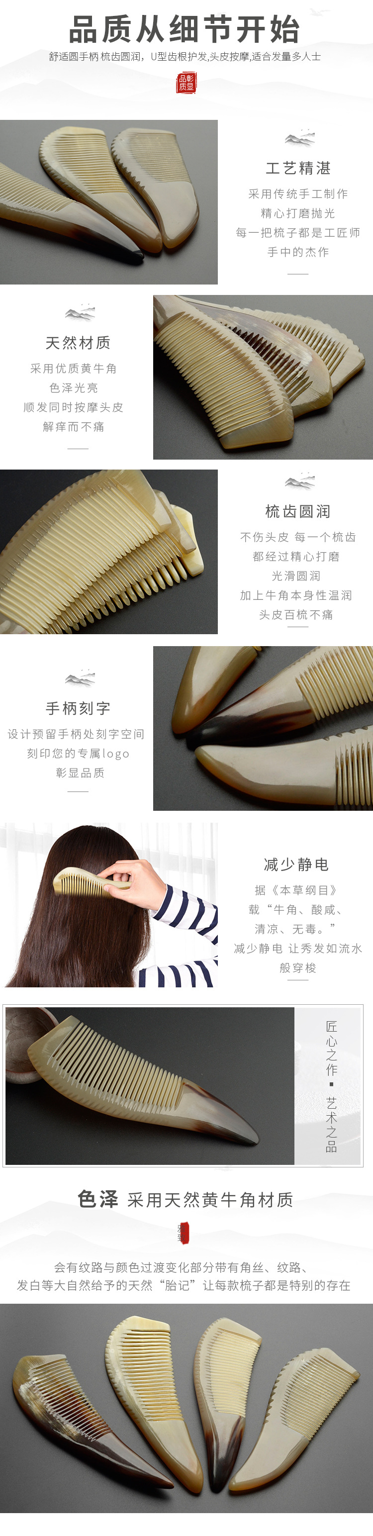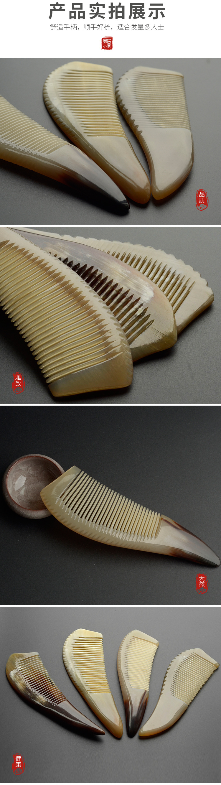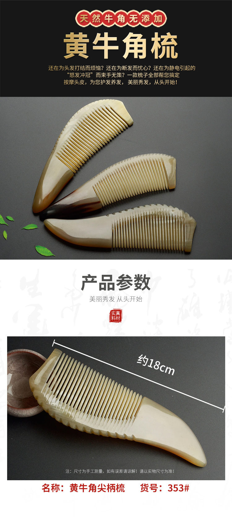 【天然牛角梳】 尖尾牛角梳 厚手柄可按摩梳子