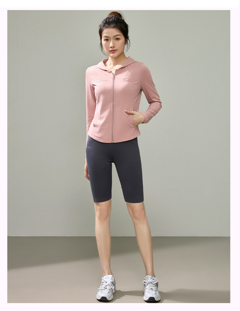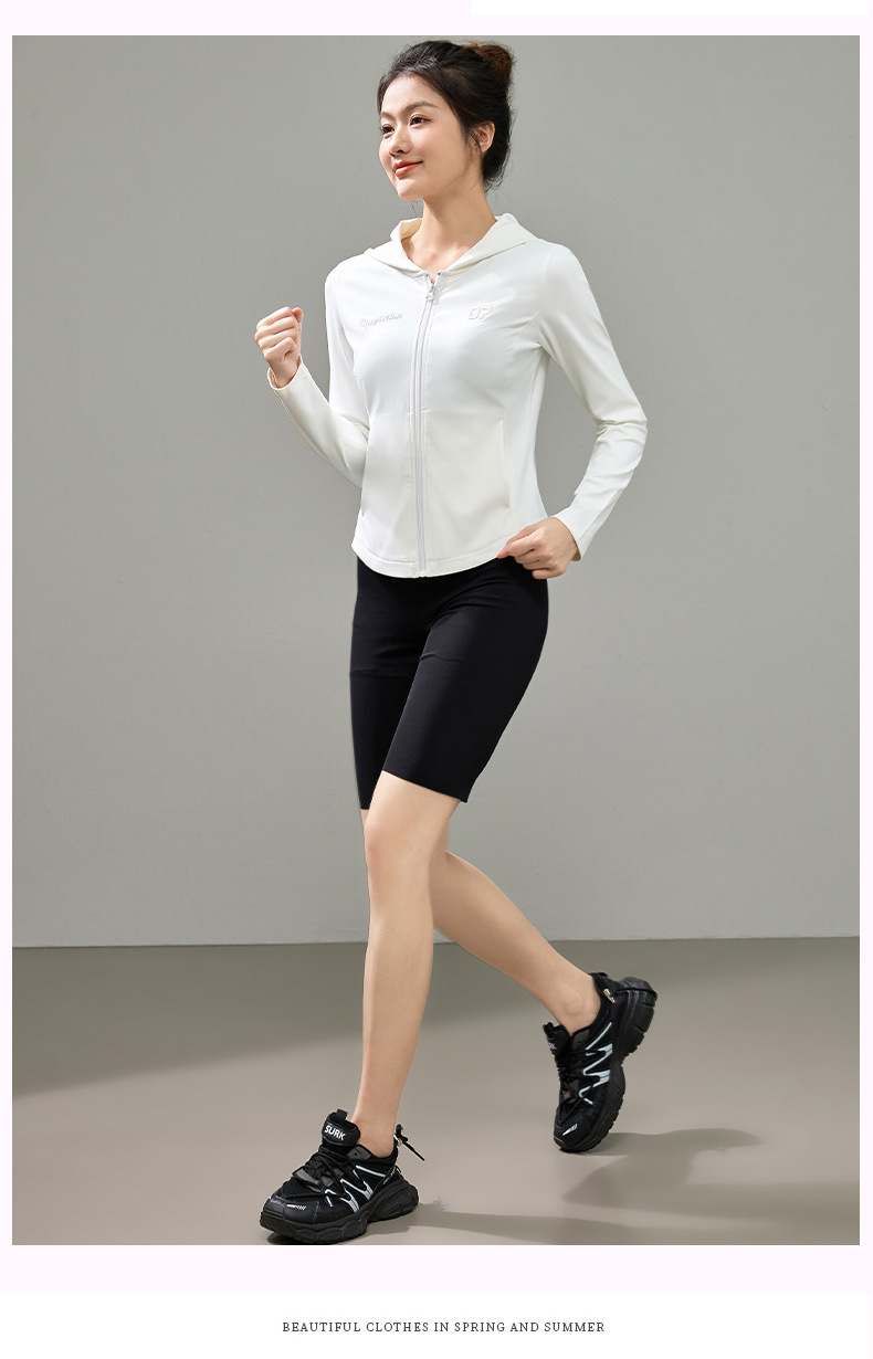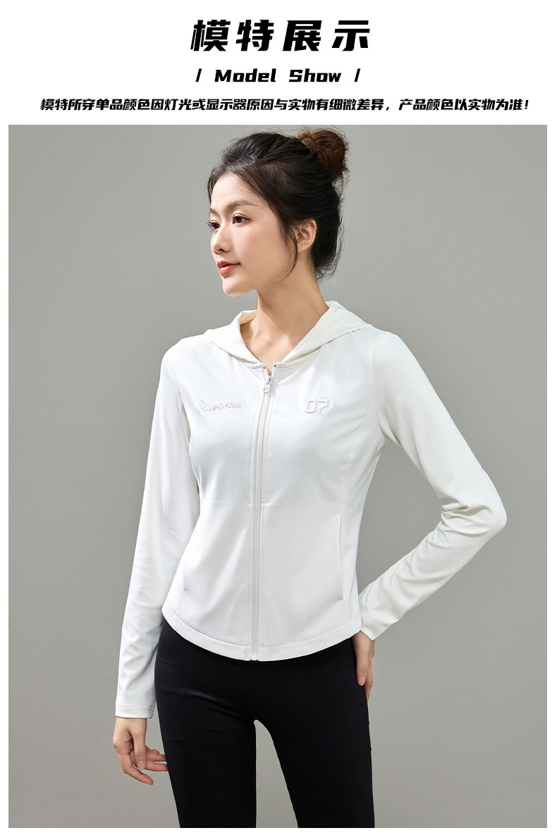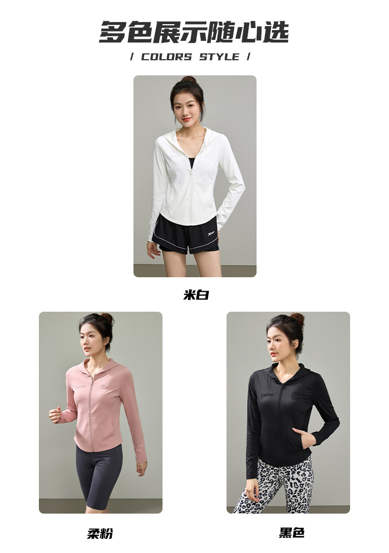 百媚生 修身瑜伽运动防晒衣女显瘦百搭户外连帽皮肤衣外套6020