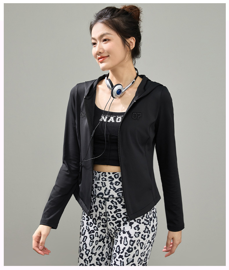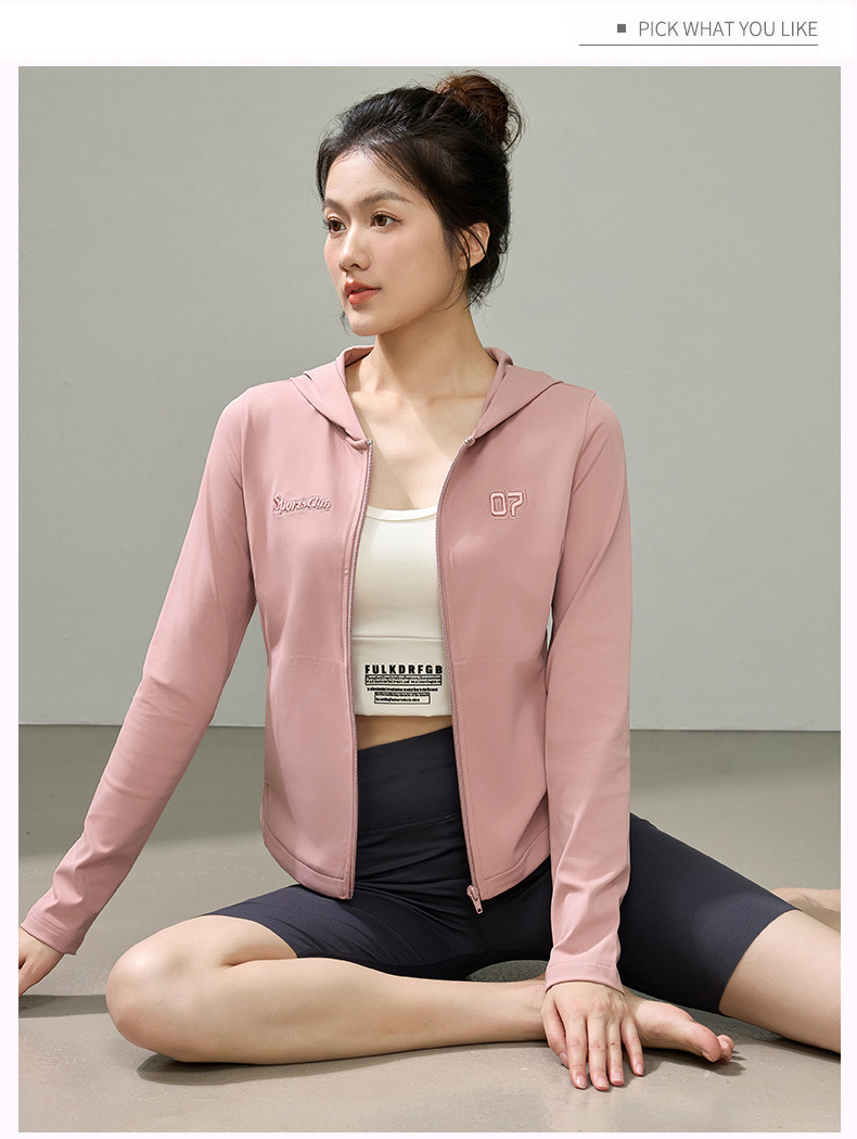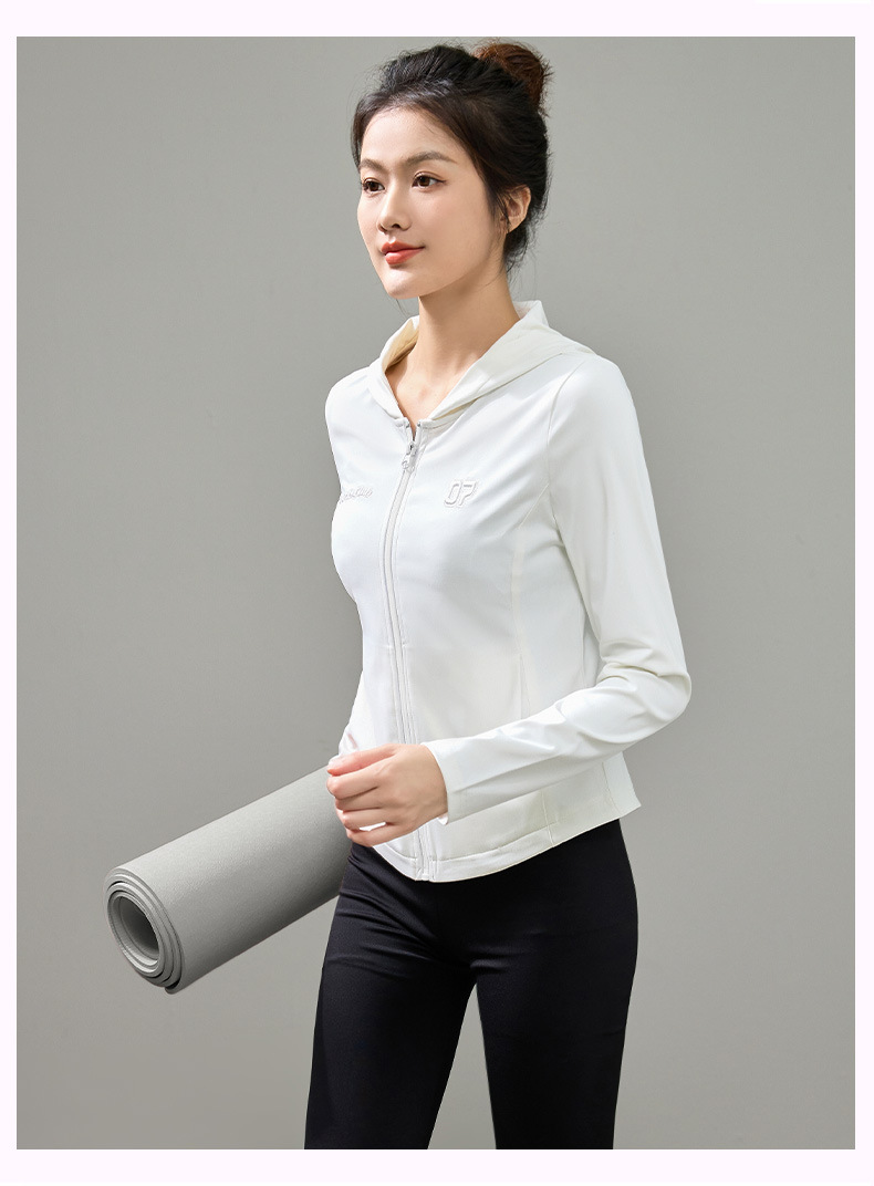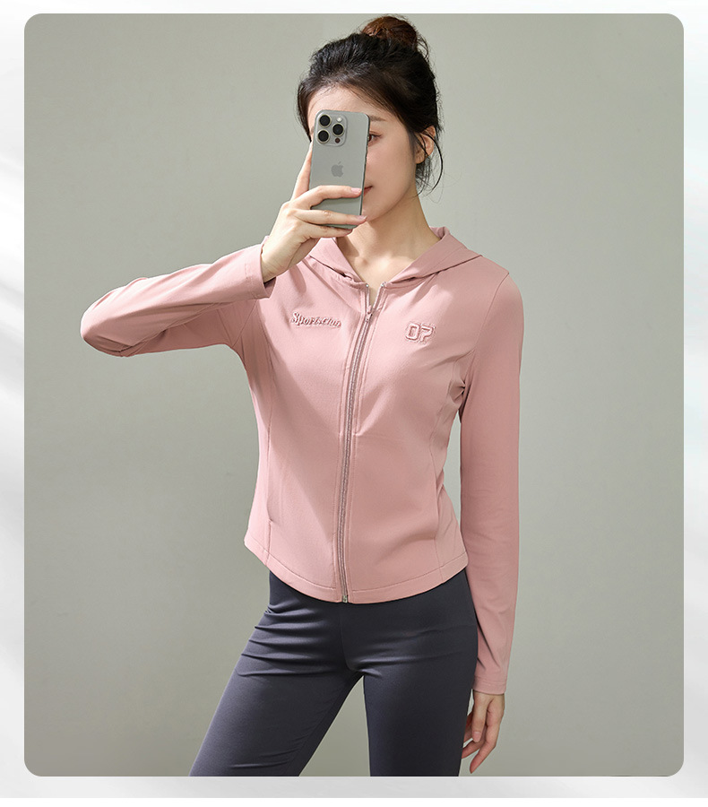 百媚生 修身瑜伽运动防晒衣女显瘦百搭户外连帽皮肤衣外套6020