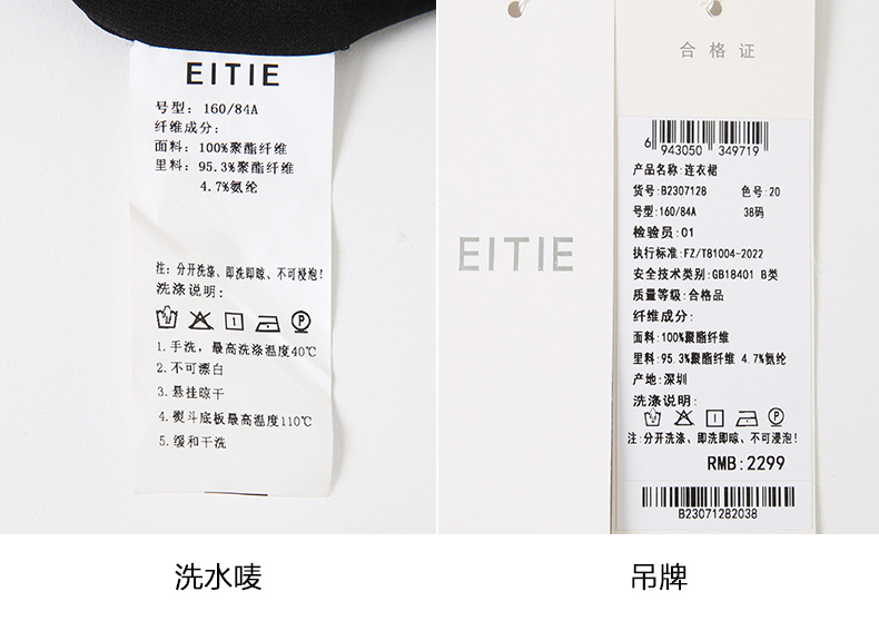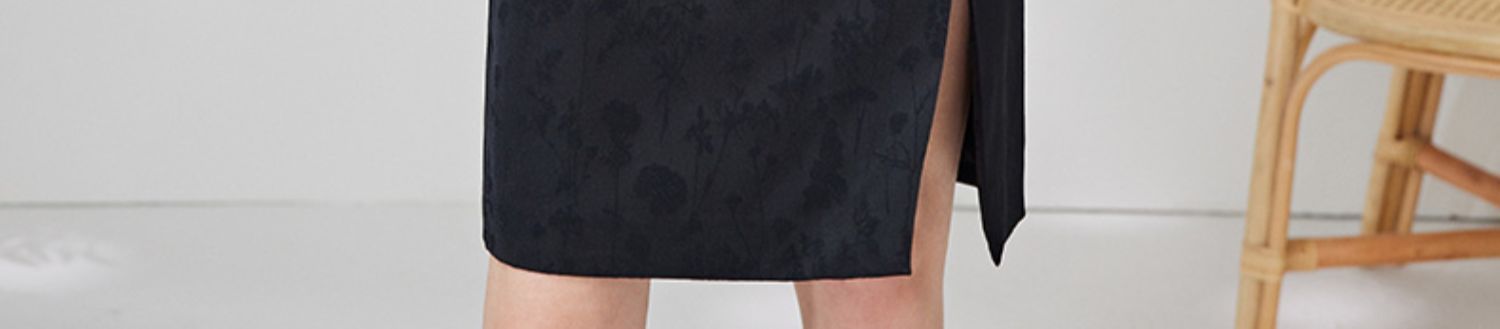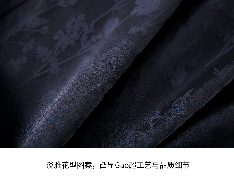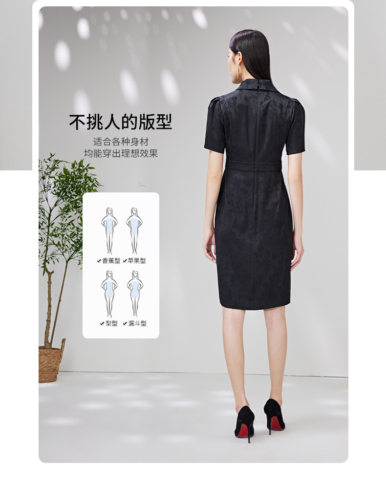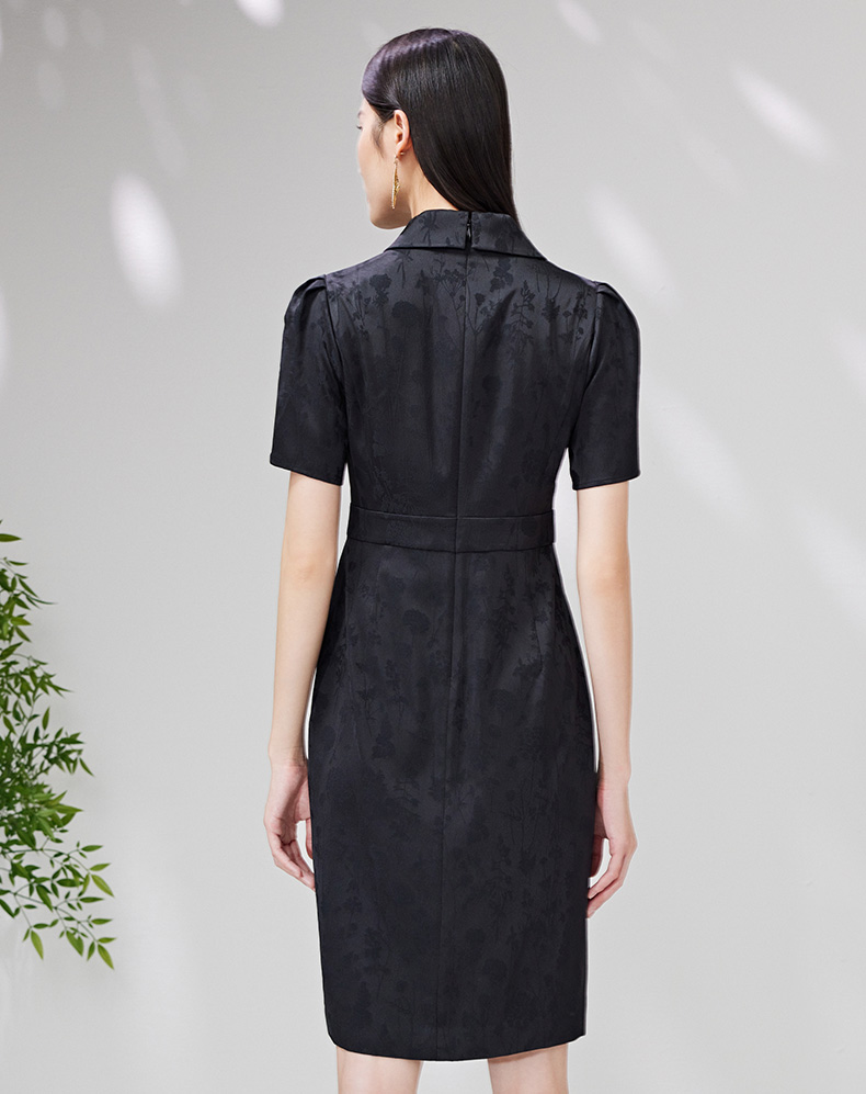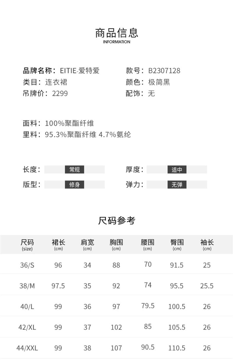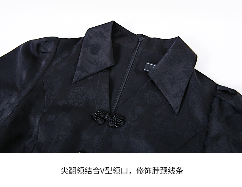 EITIE爱特爱夏新款开叉显瘦时尚中式盘扣暗纹印花黑色连衣裙B2307128