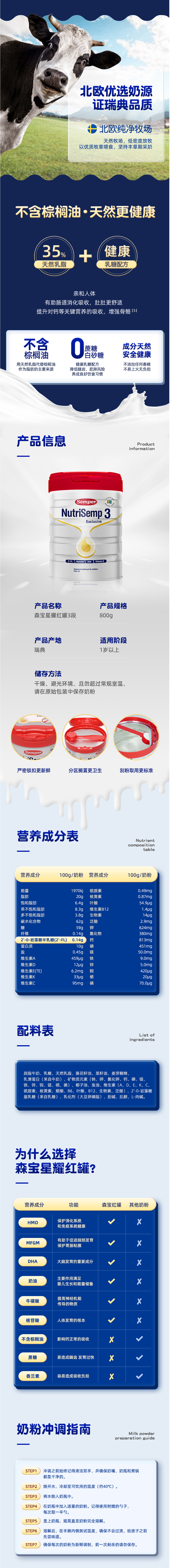 森宝(Semper)红罐白金版 婴儿配方奶粉3段(12月以上) 800g