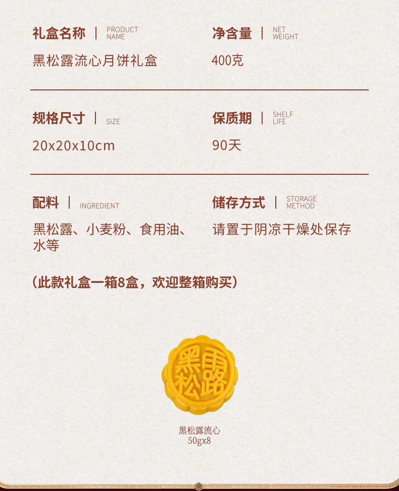 金尊黑松露流心月饼50g*8个/盒