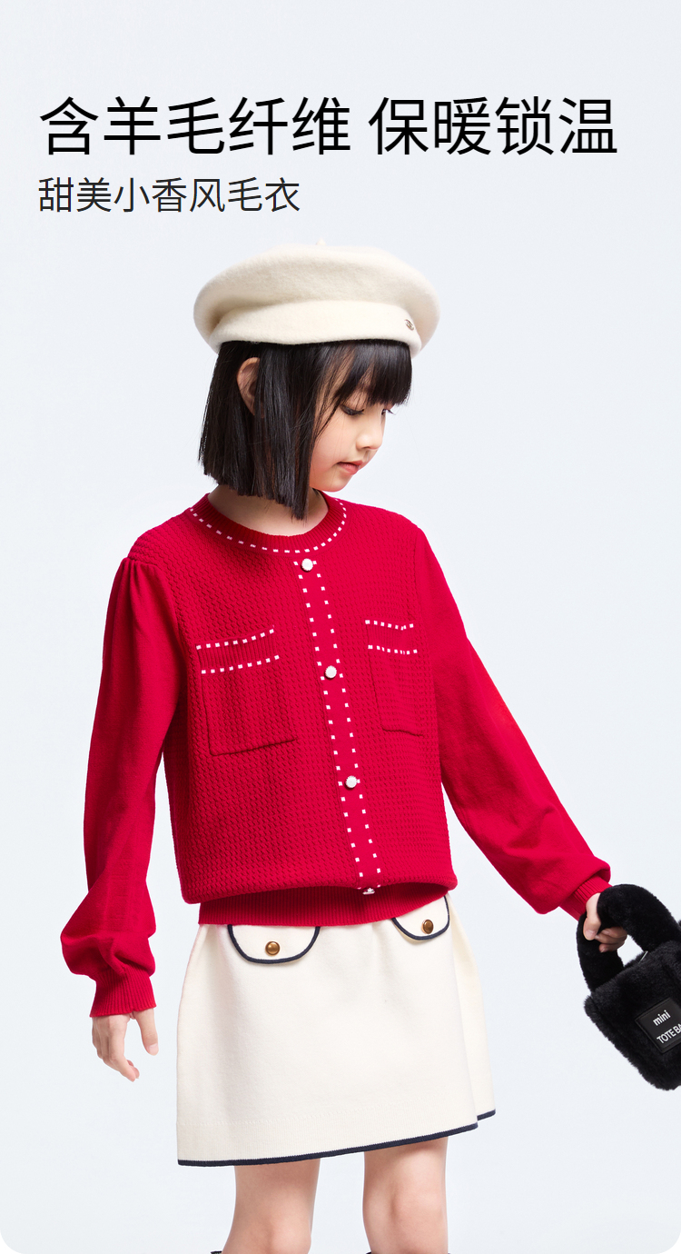 女童圆领针织衫冬季新款安奈儿童装EG444651