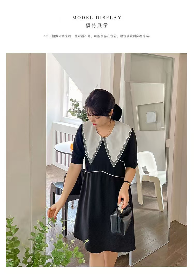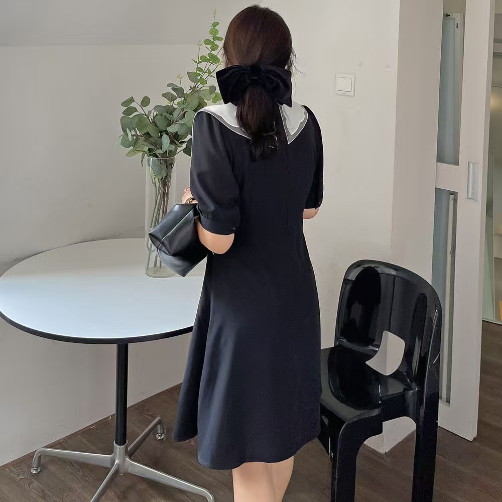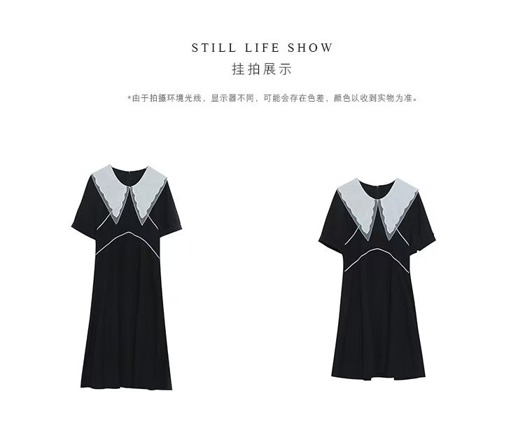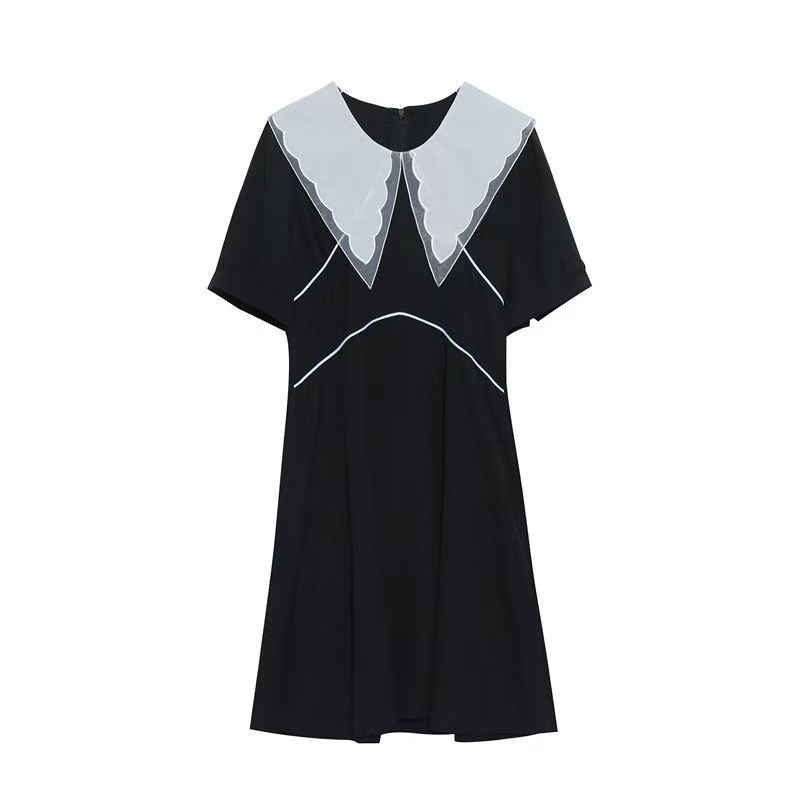 【诗铭洛可】XC2285 连衣裙短款赫本风拼色娃娃领裙子A13-2/B13-2
