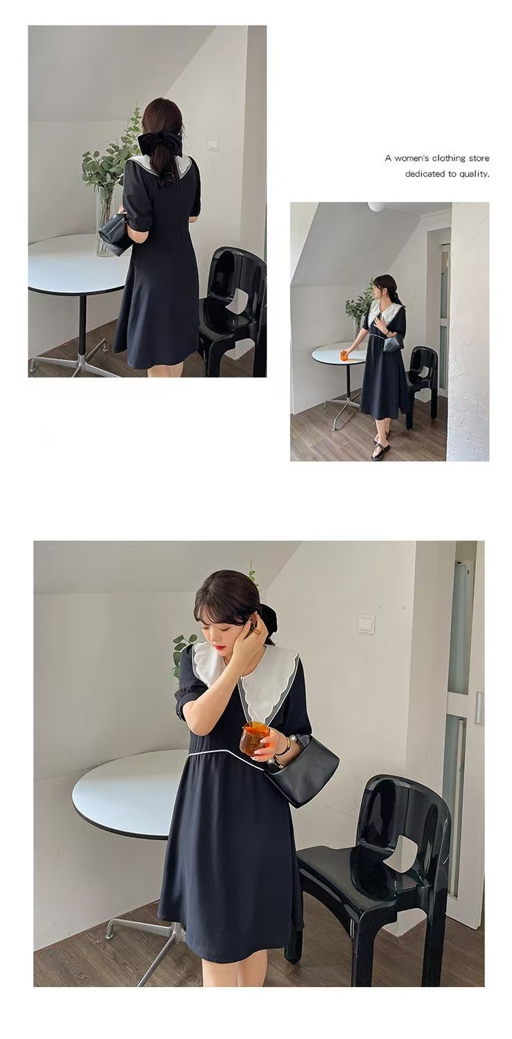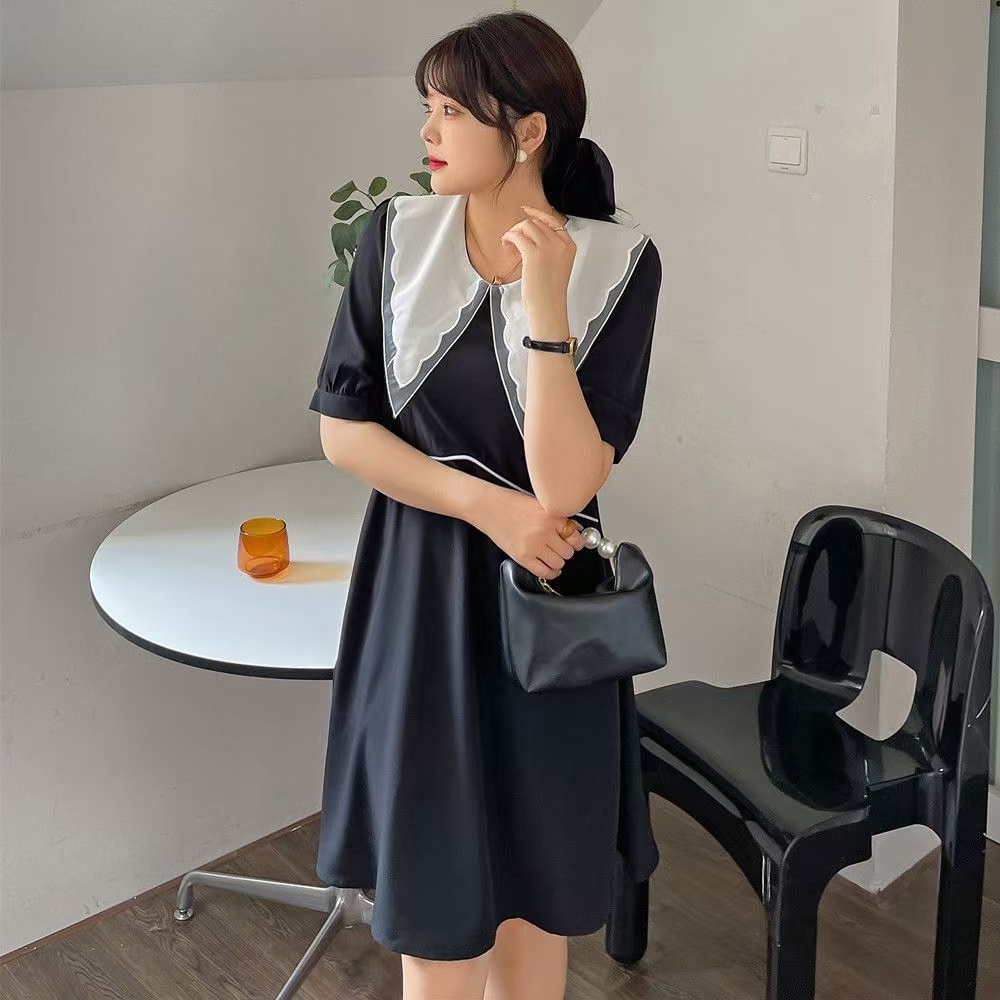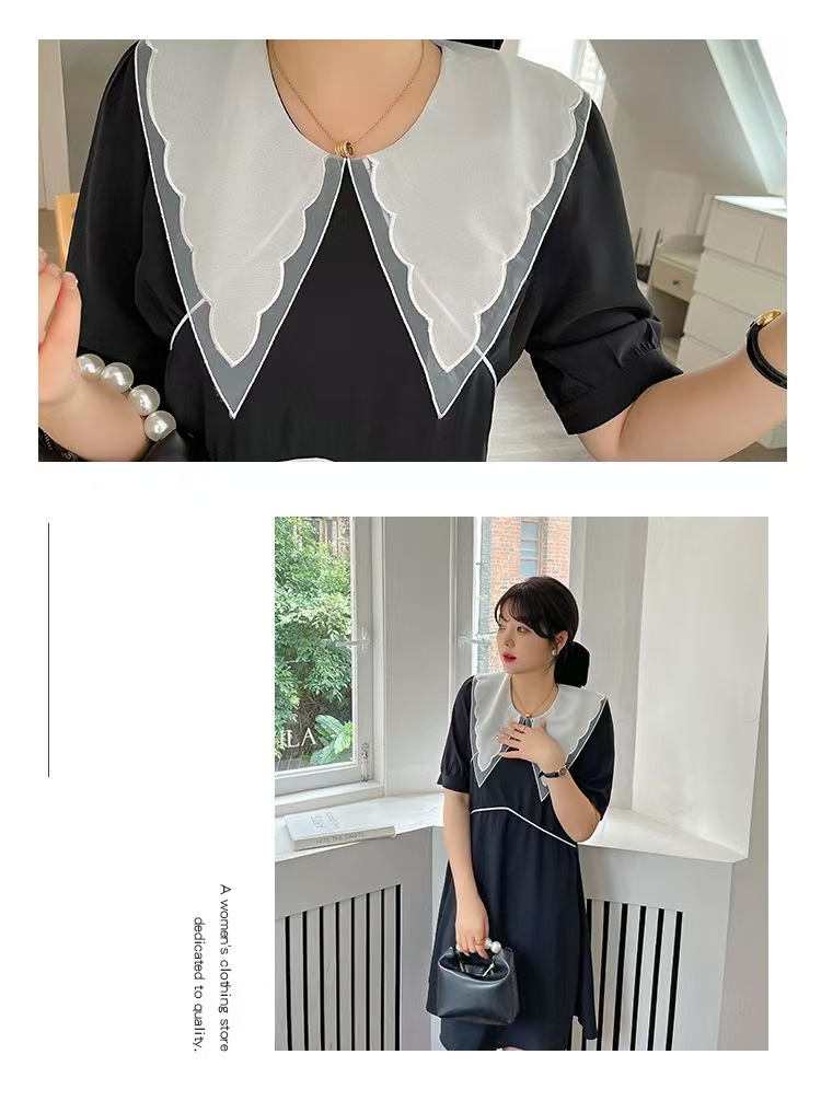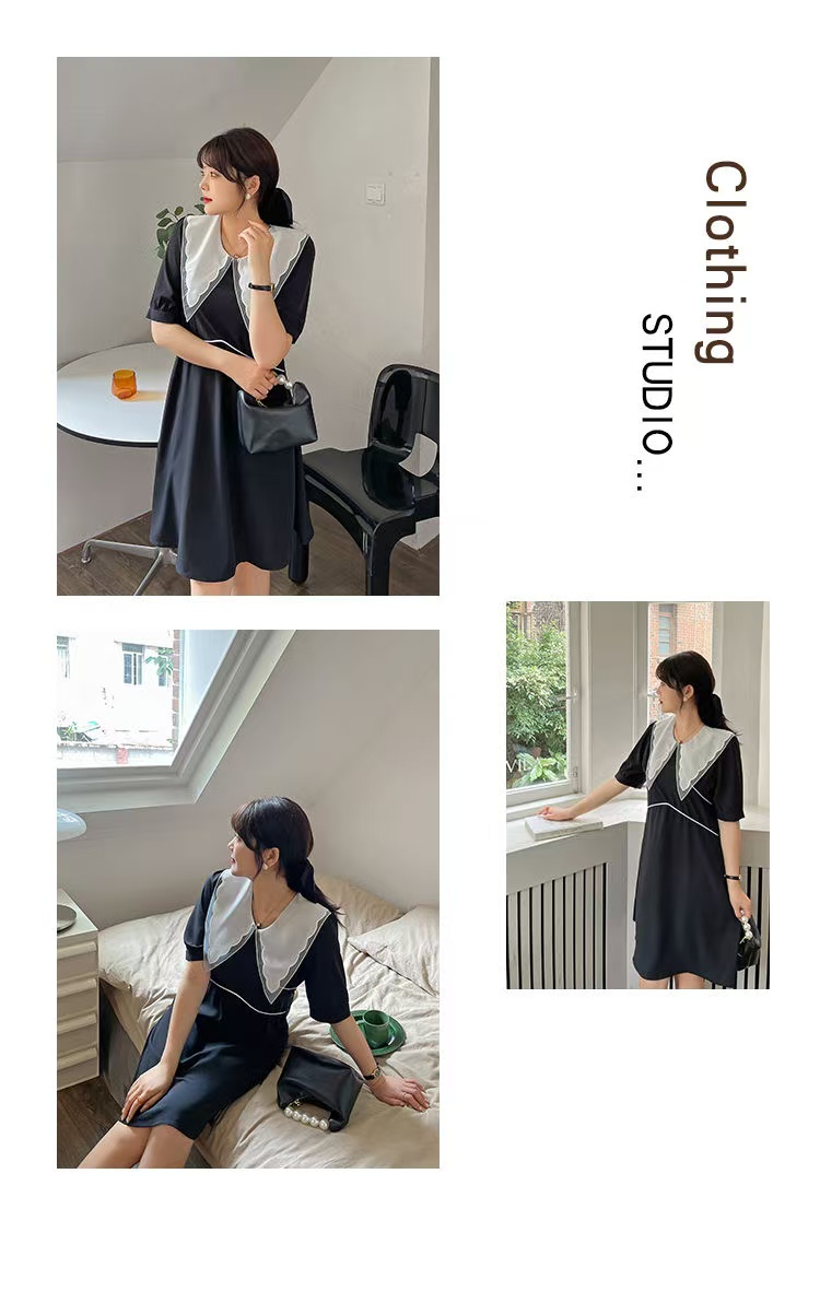 【诗铭洛可】XC2285 连衣裙短款赫本风拼色娃娃领裙子A13-2/B13-2