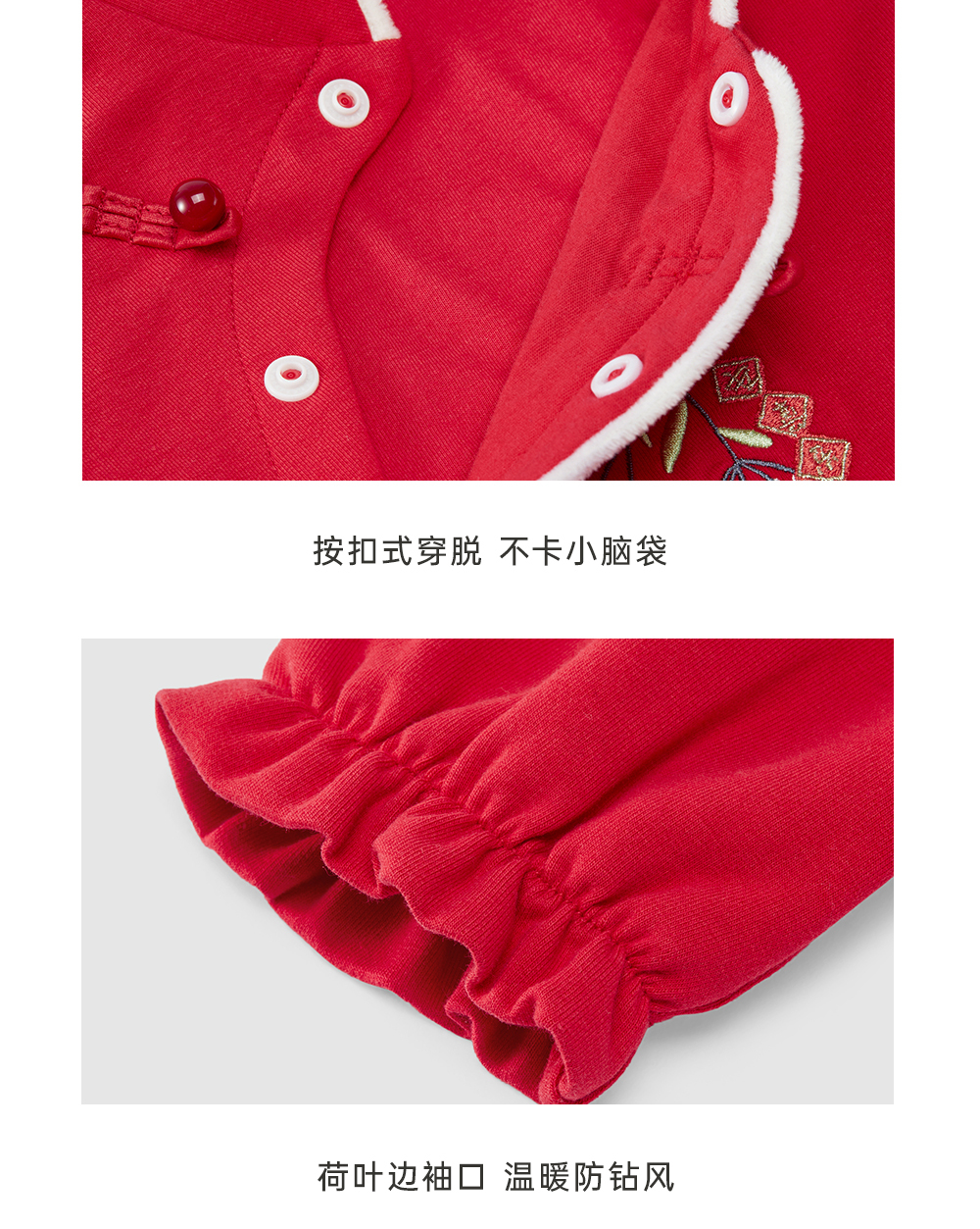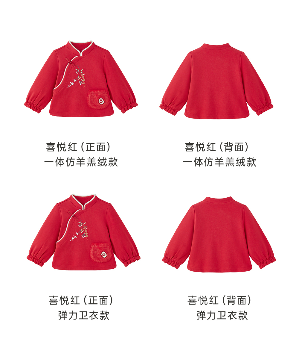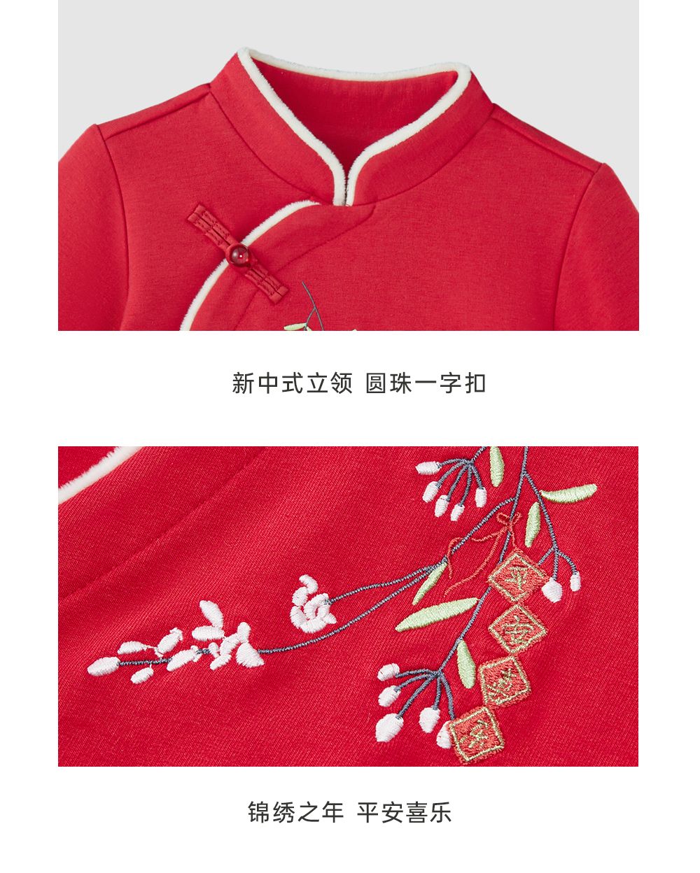 【商场同款】英氏女童秋装秋冬加绒保暖新中式卫衣套头衫