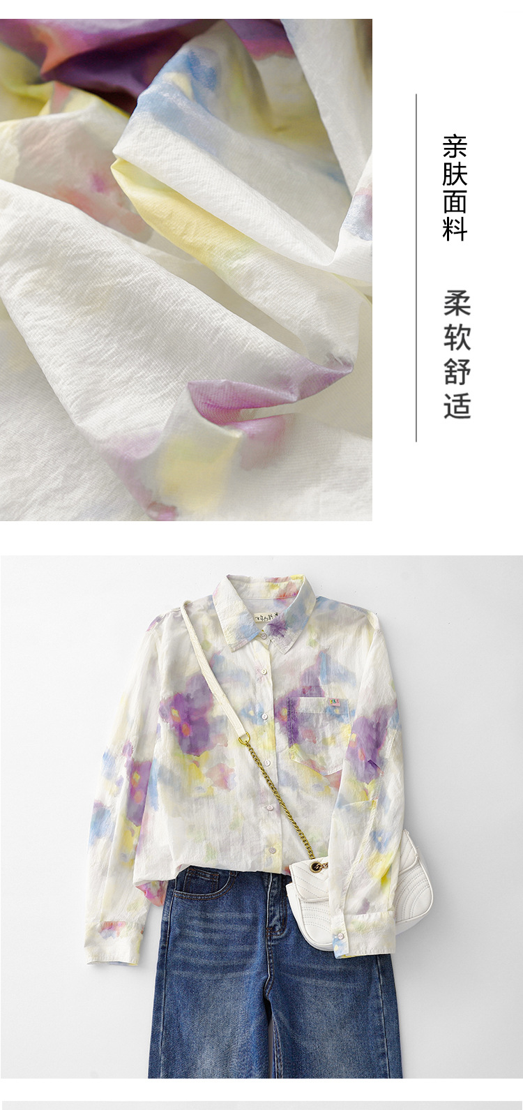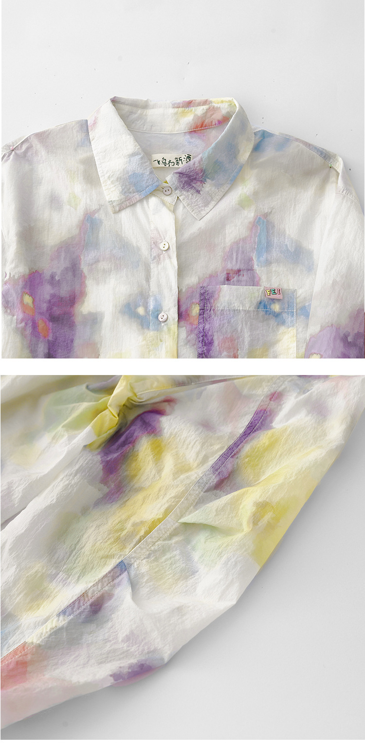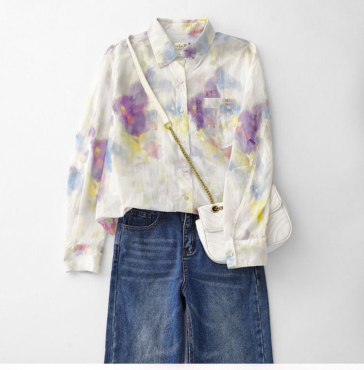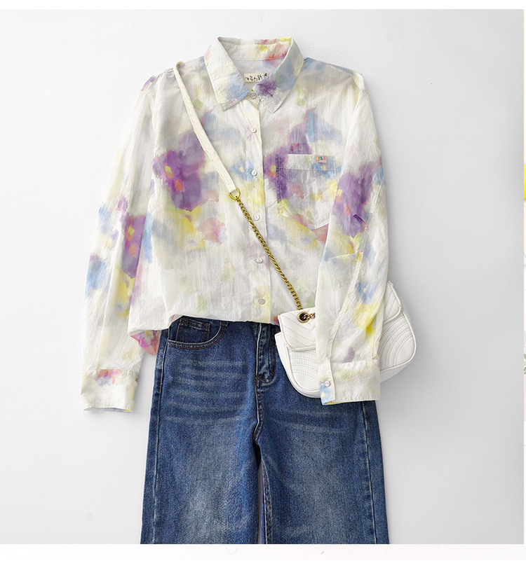 GYH 1852印花棉长袖衬衫复古宽松减龄休闲衬衣