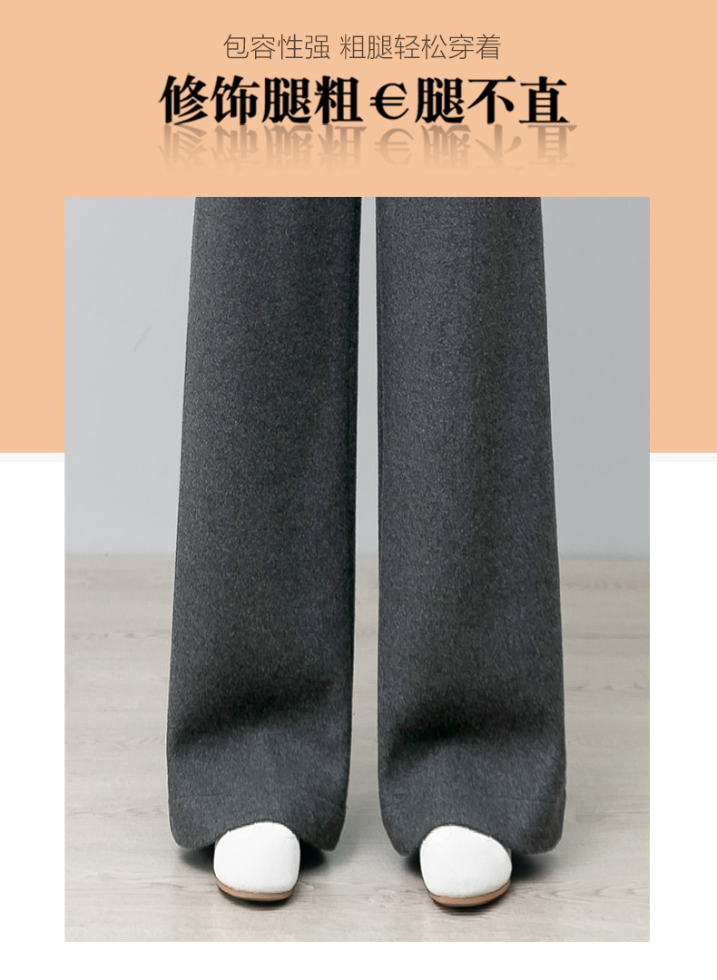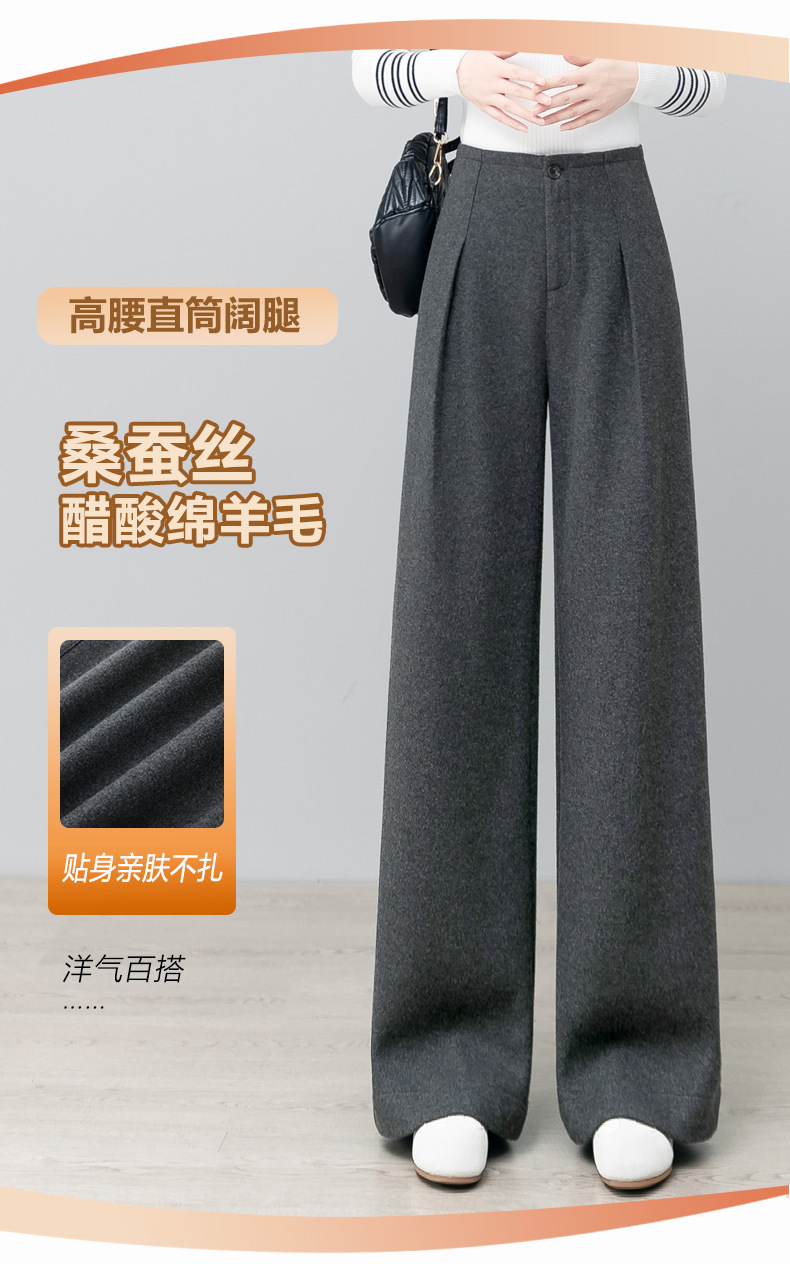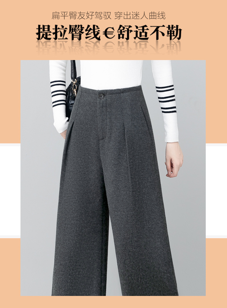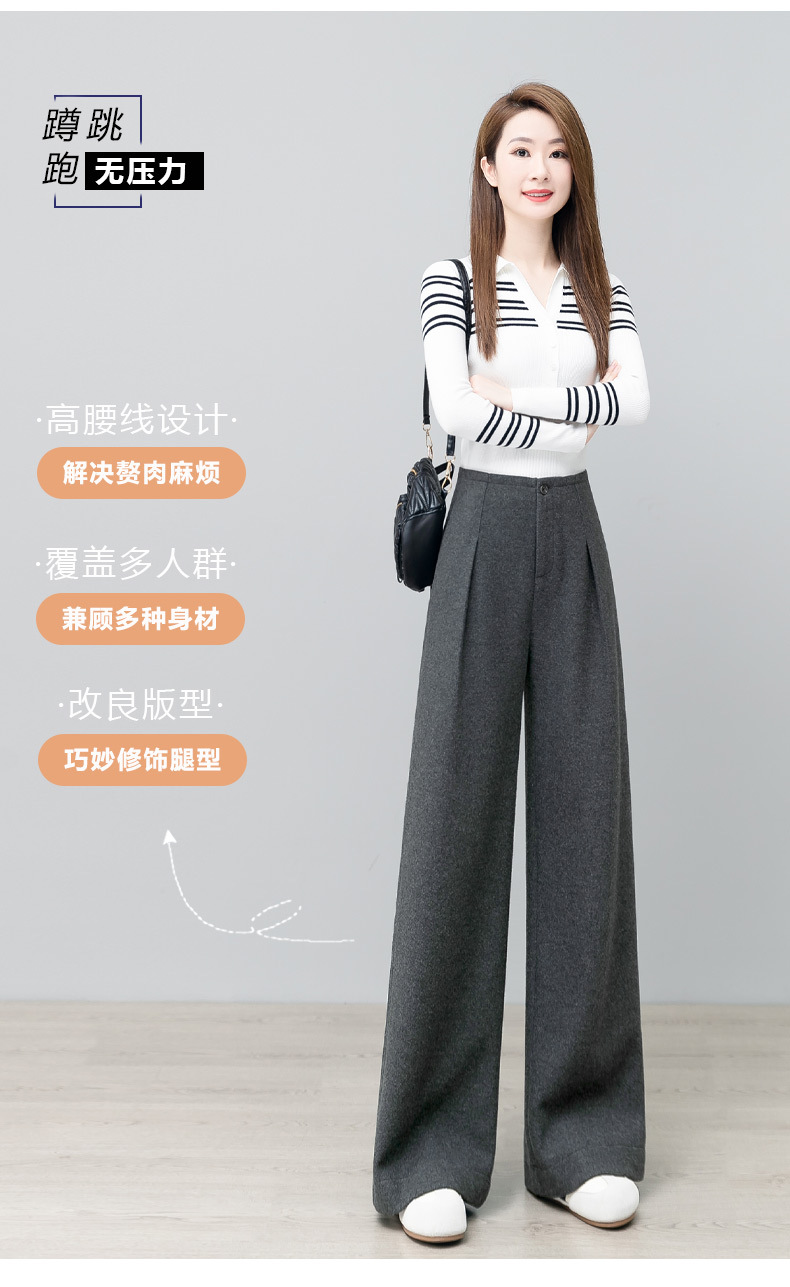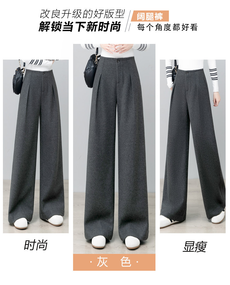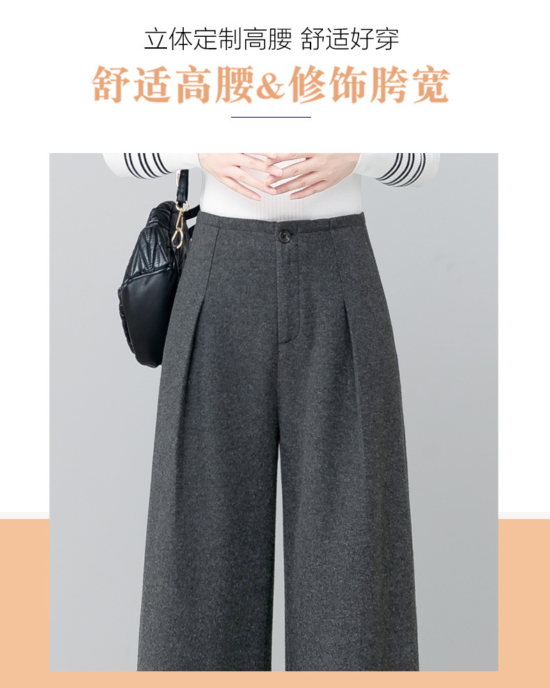 YM 2797阔腿裤气质高腰宽松垂感毛呢保暖直筒裤 商品图4