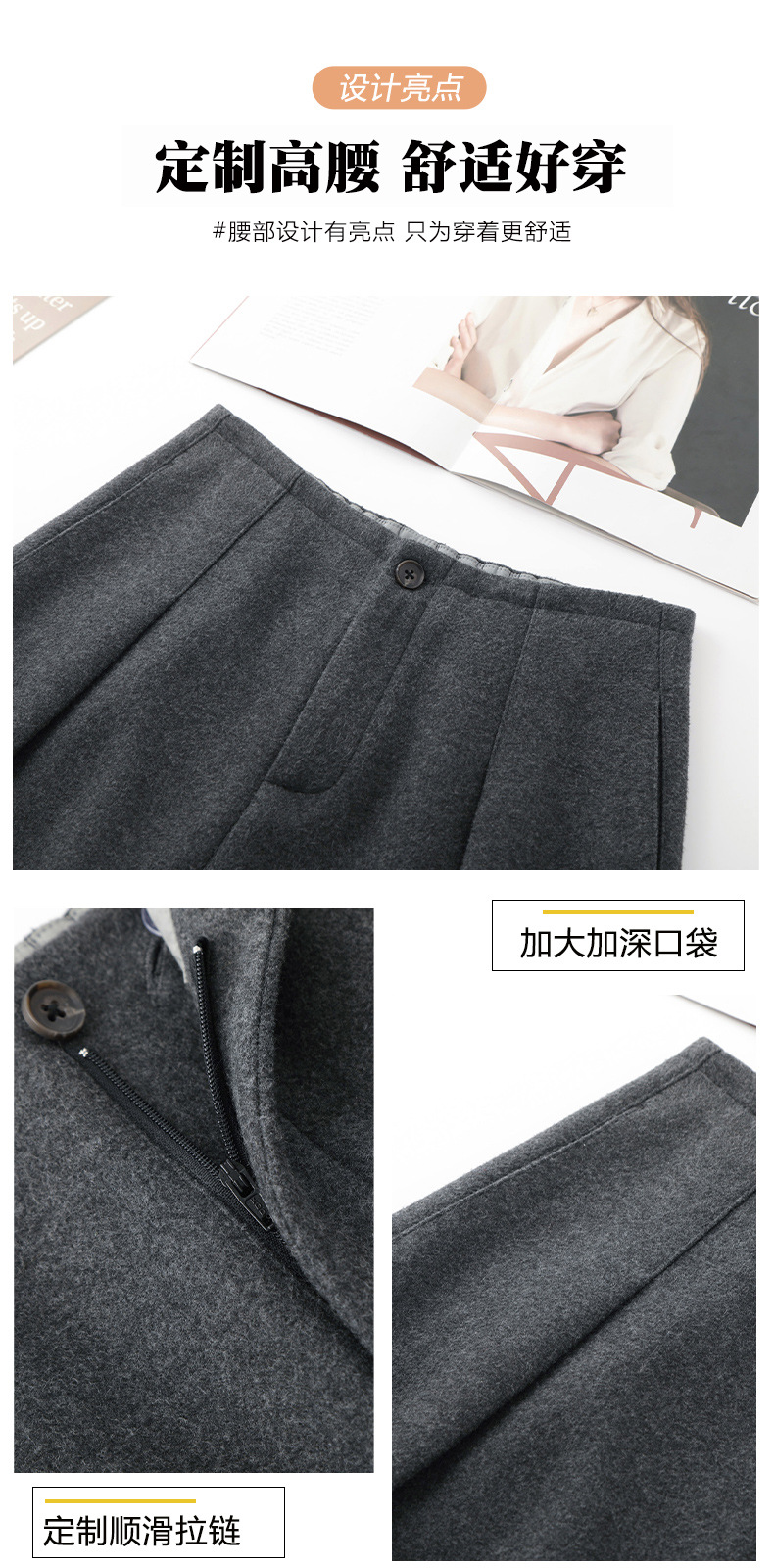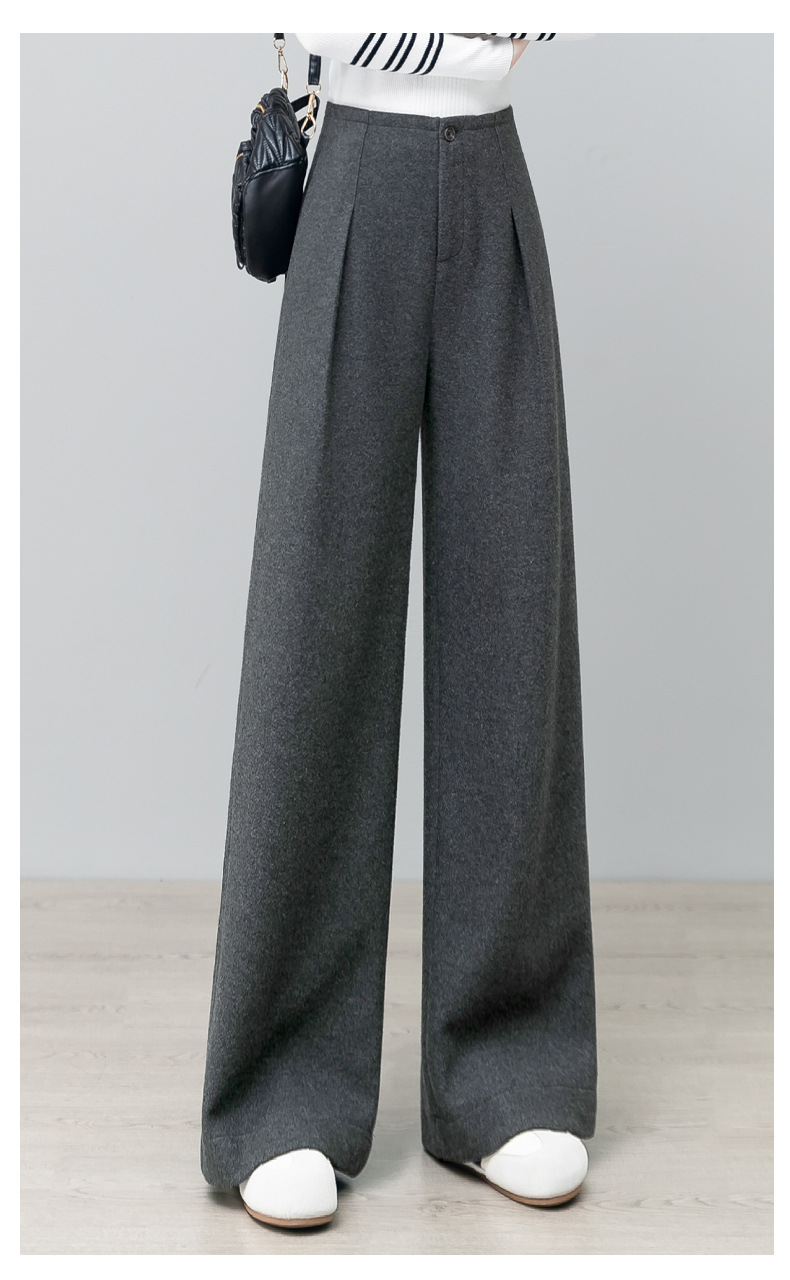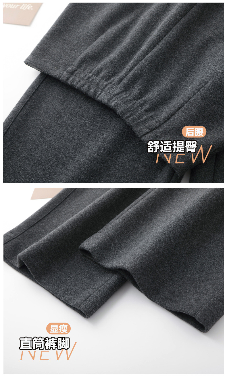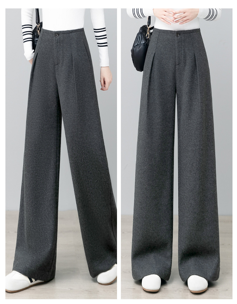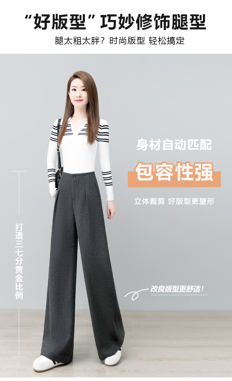 YM 2797阔腿裤气质高腰宽松垂感毛呢保暖直筒裤 商品图4