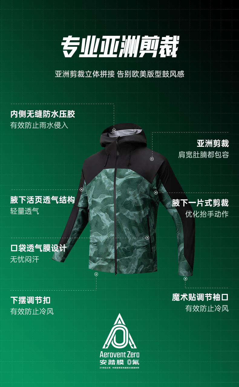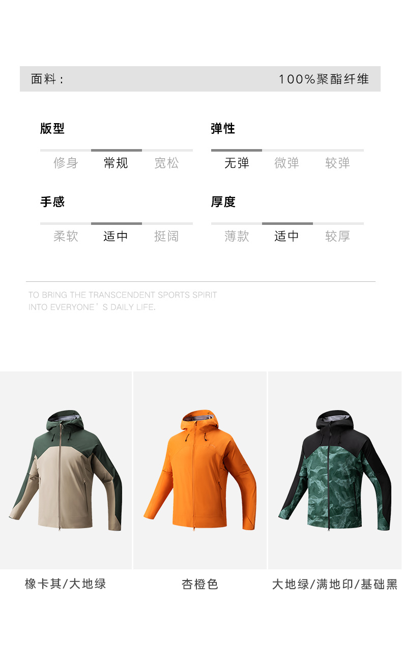 安踏中国国家地理 无氟安踏膜风暴甲防水男士冲锋衣152536608