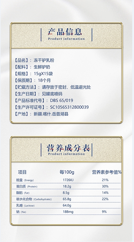 源西域纯驴奶粉冻干驴奶粉 正宗新疆喀什岳普湖纯驴乳225g
