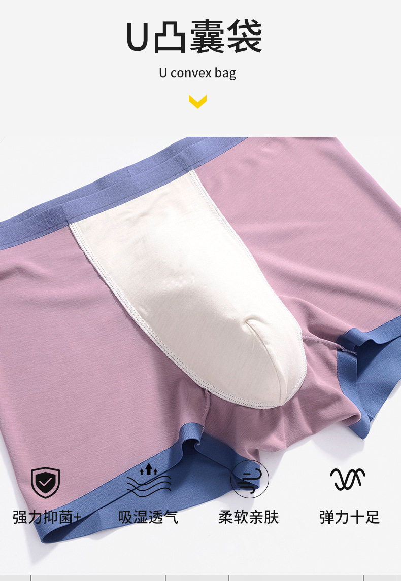 XN-M001  【1条】100支双面莫代尔内裤男士大码无痕纯色平角蚕丝短裤 商品图3