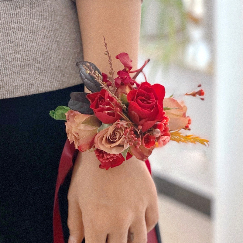 手腕花-高级商务会议酒会婚礼新娘伴娘鲜花手腕配花伴手礼成人礼领证拍照道具(满100元起送)
