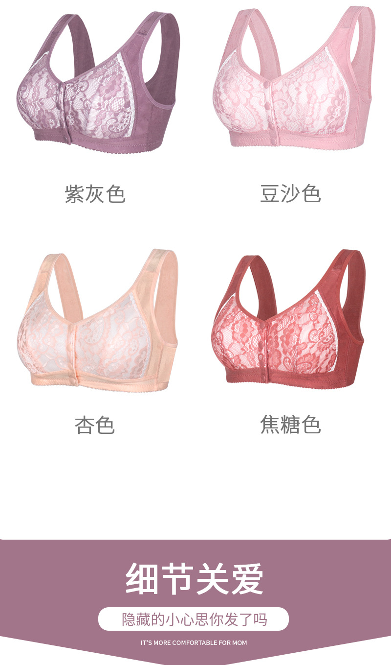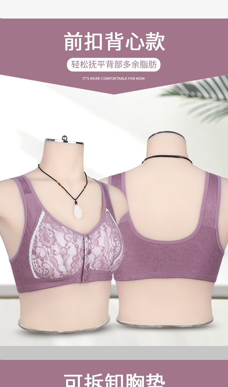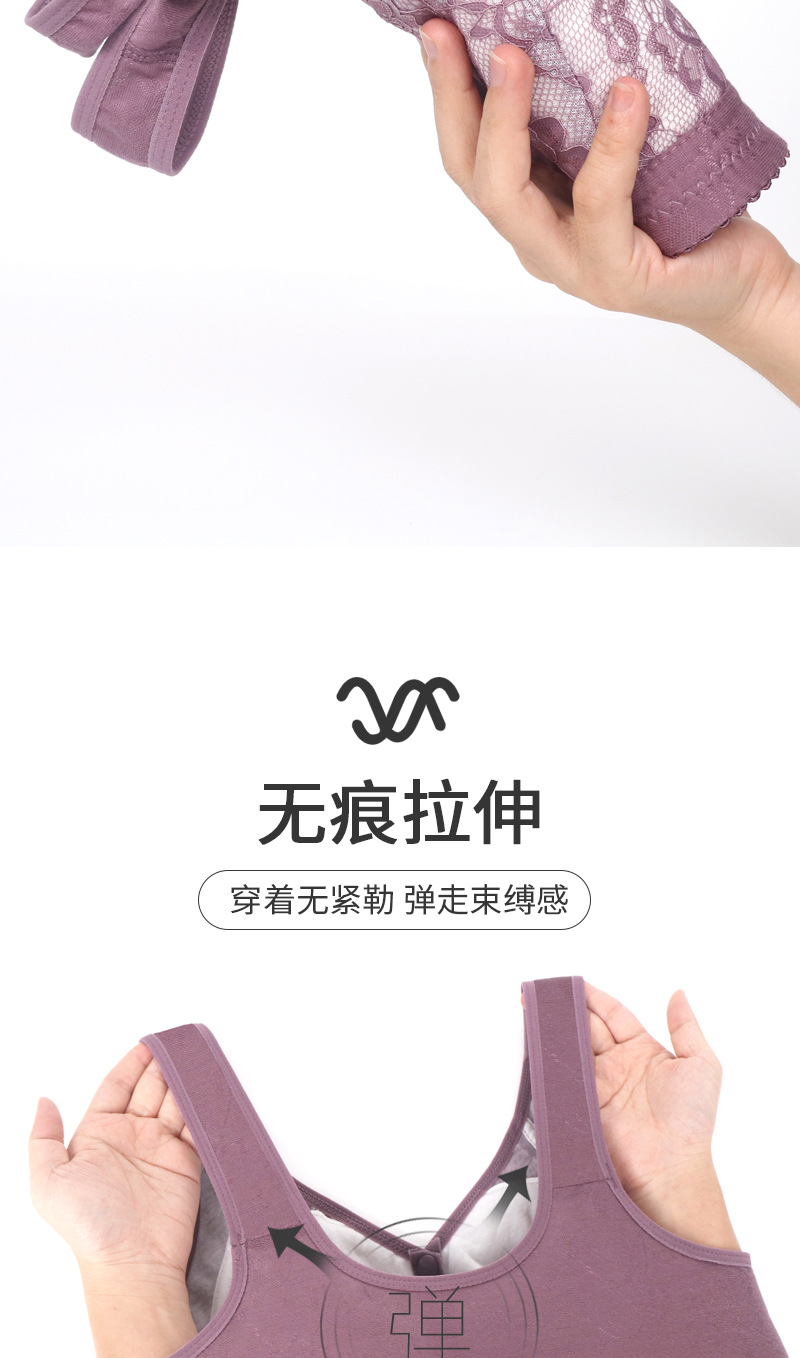 上海旗袍厂YY-187蕾丝杯前扣内衣 女士大码无钢圈宽肩带背心式可插片文胸