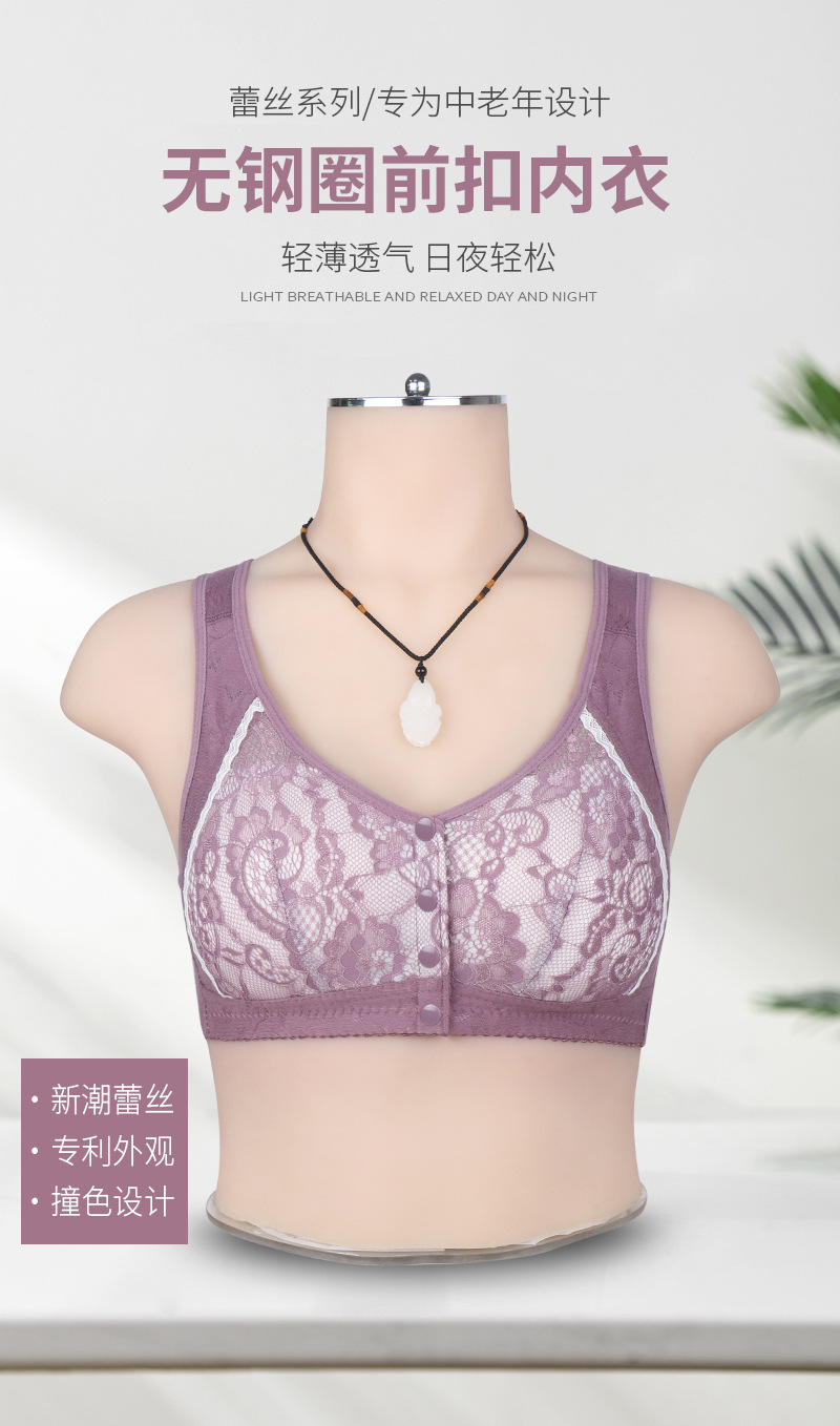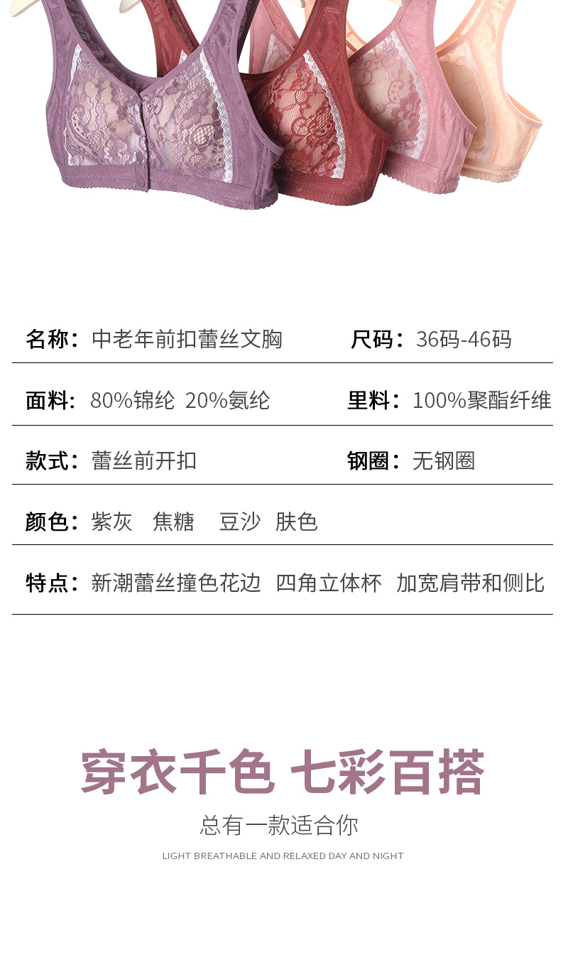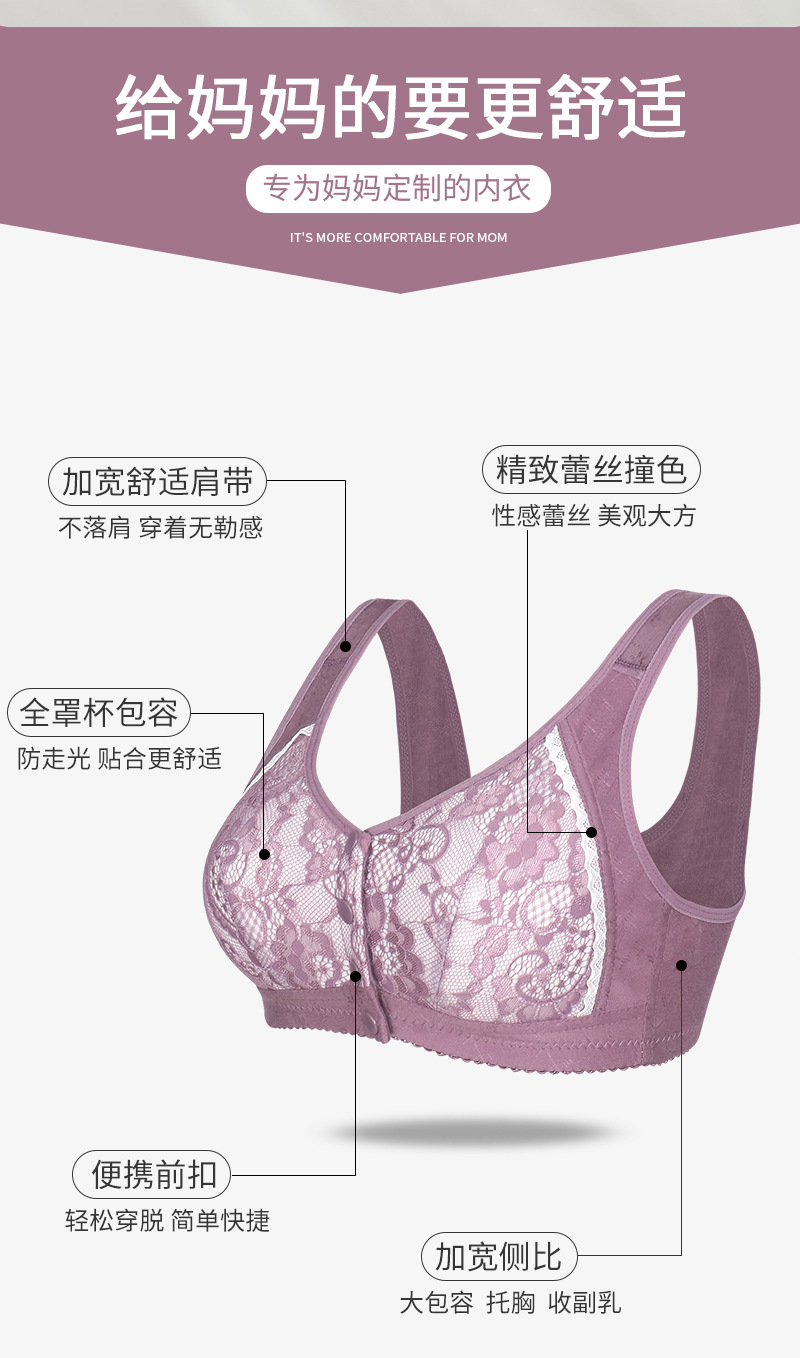 上海旗袍厂YY-187蕾丝杯前扣内衣 女士大码无钢圈宽肩带背心式可插片文胸
