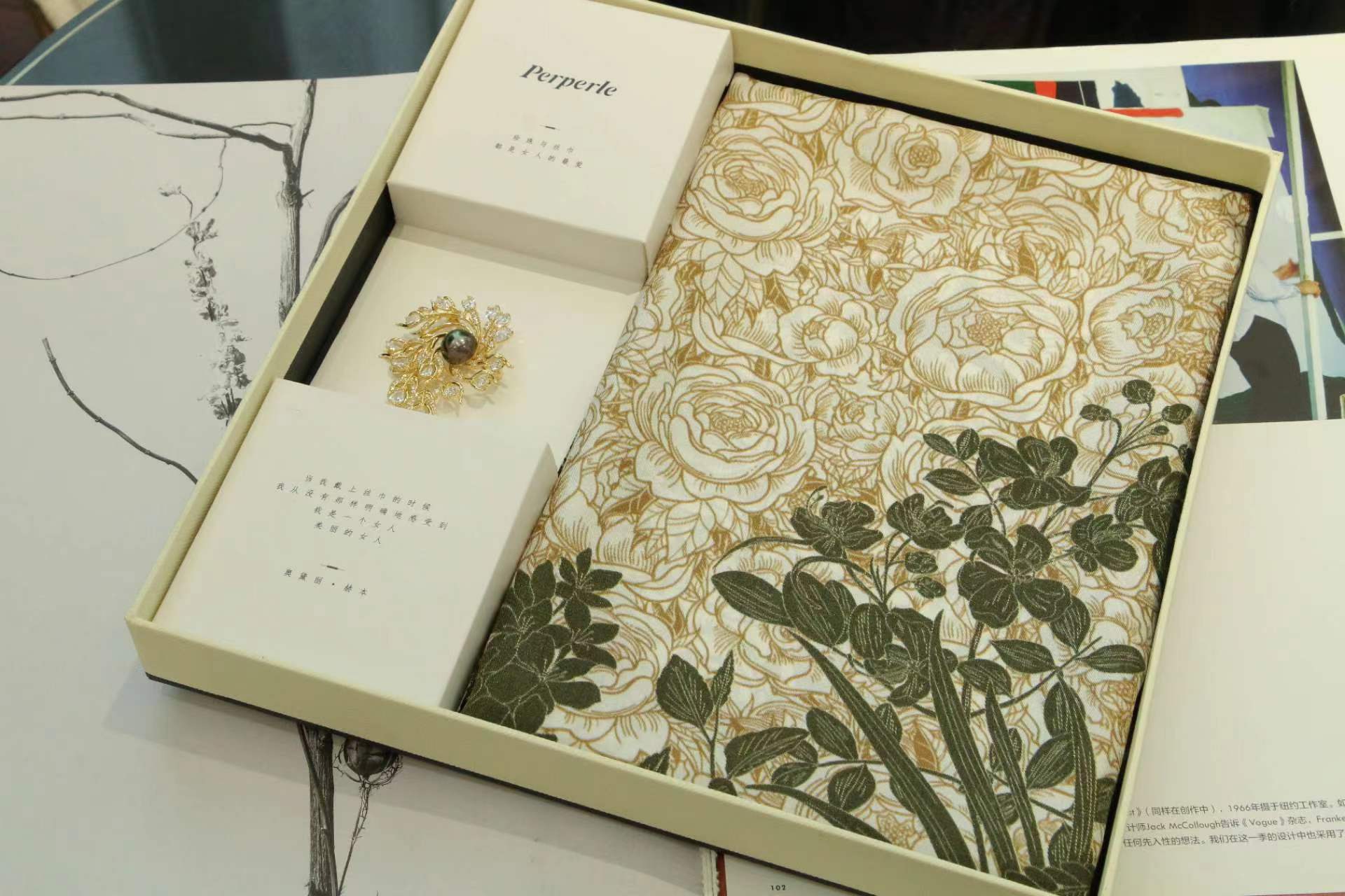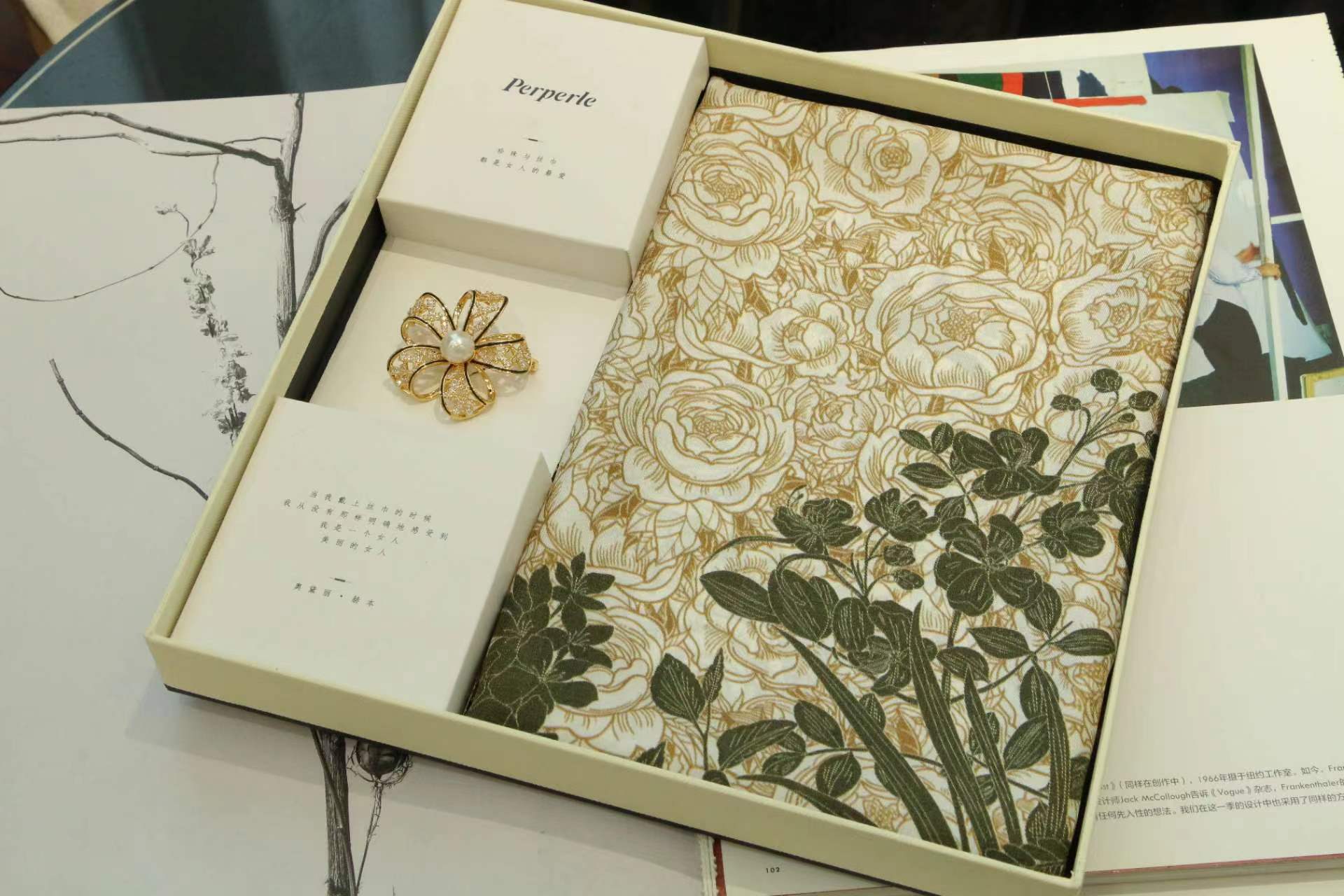 【甄珠贝·花卉系列】70*70cm双面异色牵牛花丝巾和珍珠胸针礼盒套装