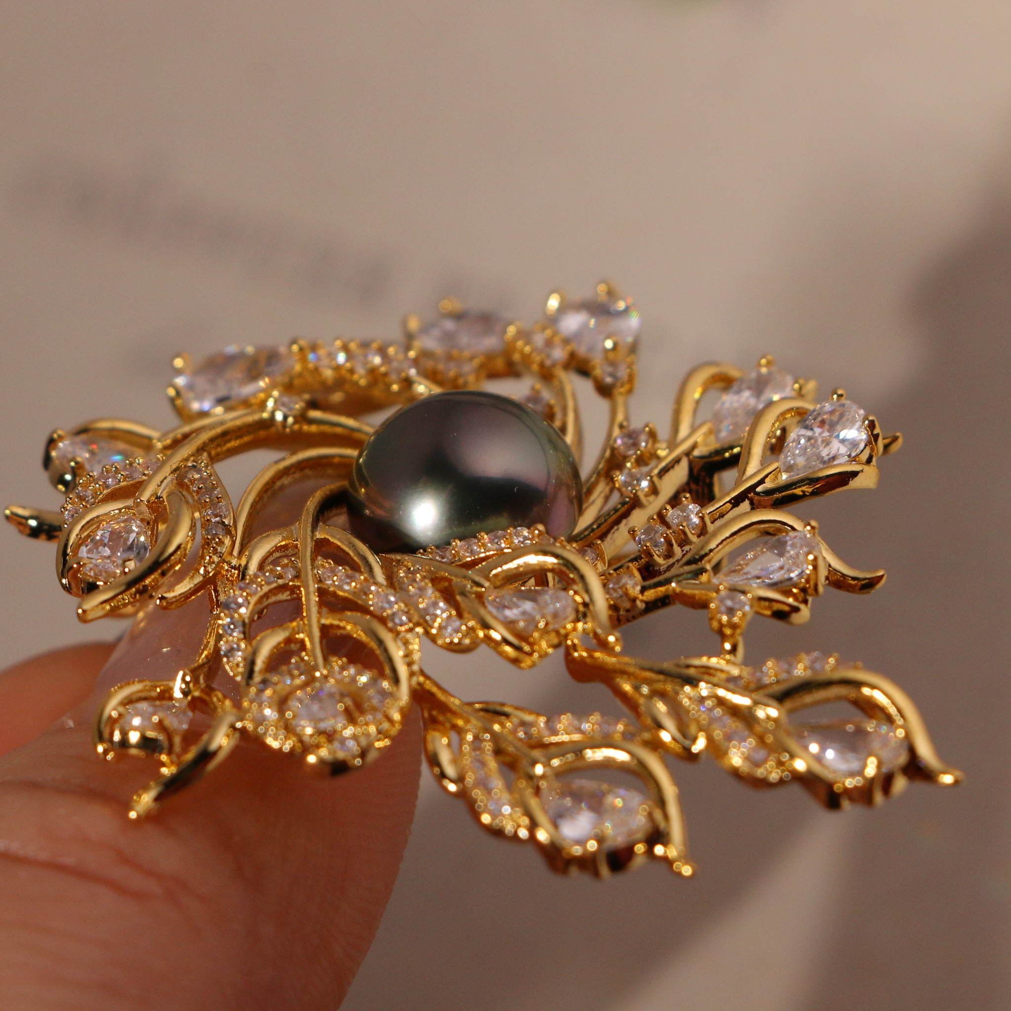 胸针:淡水珍珠,甄白,10-11mm,大溪地海水马贝珠,10-11mm