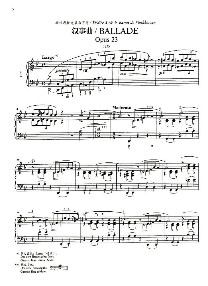 肖邦是**位创作钢琴叙事曲的作曲家,他一生共创作了四首钢琴叙事曲,就其表现内容而言,一般认为多与密茨凯维支的诗有关。音乐气势恢宏、富有交响性,具有强烈的戏剧性和史诗性的特点。在音乐结构上,肖邦广泛采用混合曲式。音乐内涵丰富、深刻,为其后的交响诗、音诗等体裁的发展产生了深远的影响。