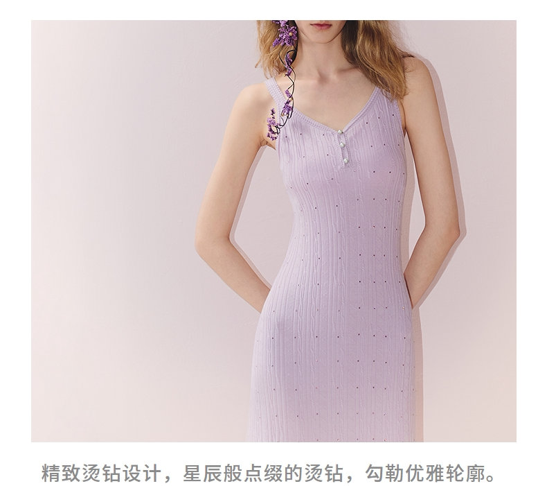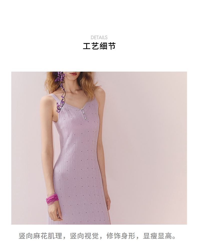 MAXRIENY南法度假风背心吊带v领连衣裙25秋肌理感x型修身收腰长裙(货号:MS86DR278)