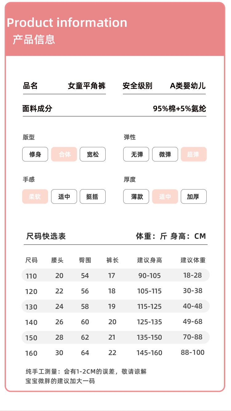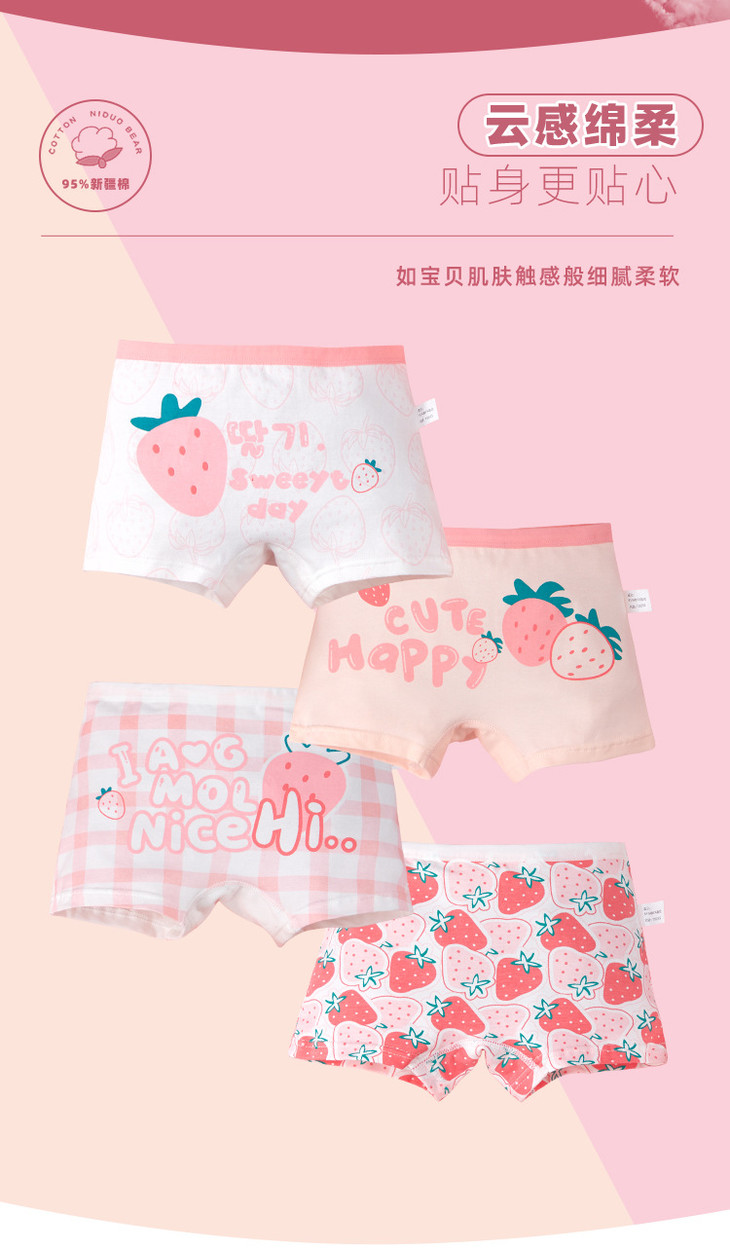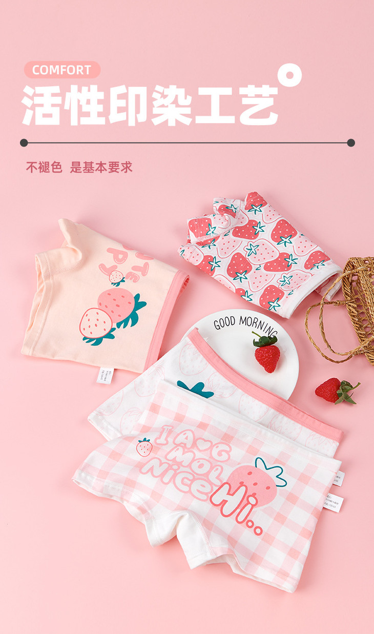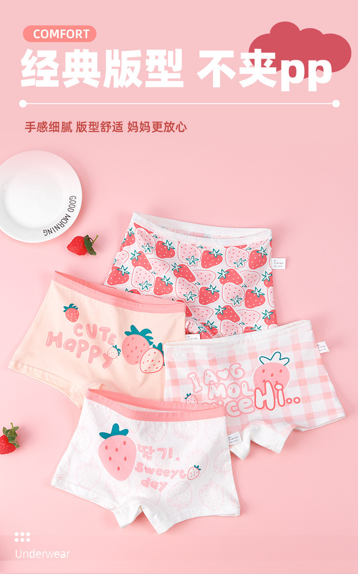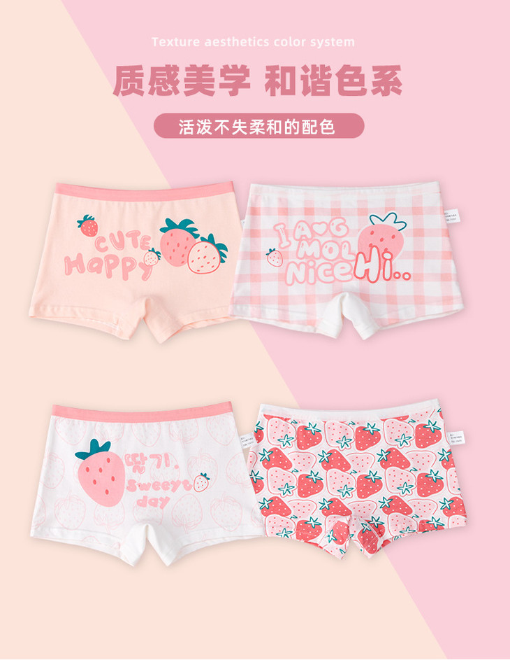 【4条装A类纯棉女童内裤】儿童A类yi菌女孩,宝宝中大童四平角裤头不夹pp中大童短裤-QQ