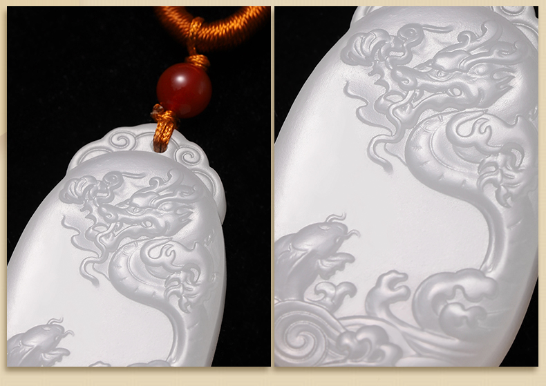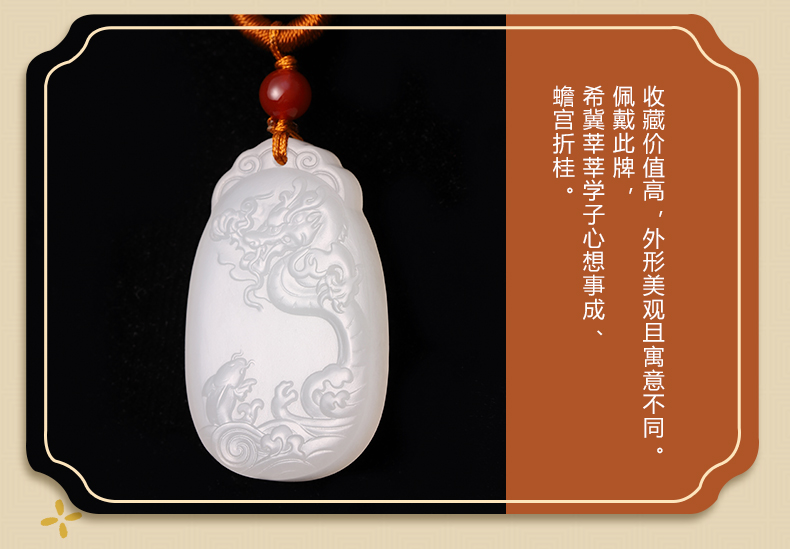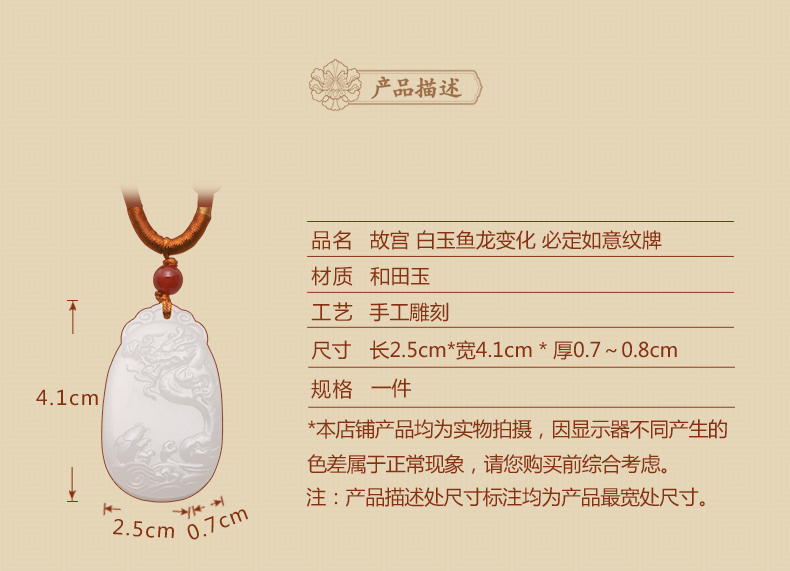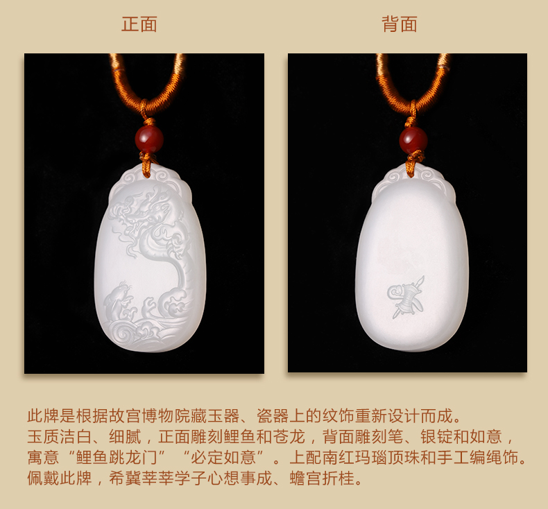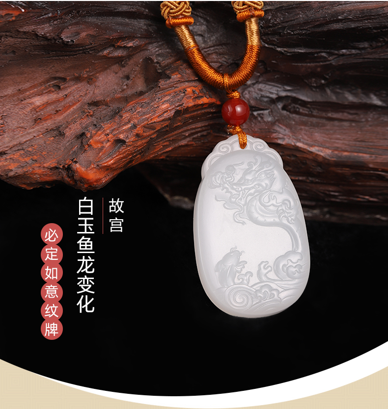 故宫 白玉鱼龙变化必定如意纹牌