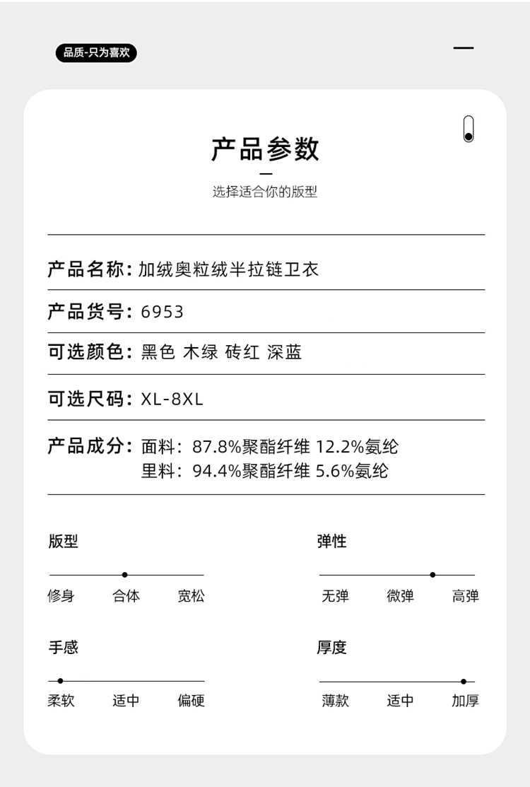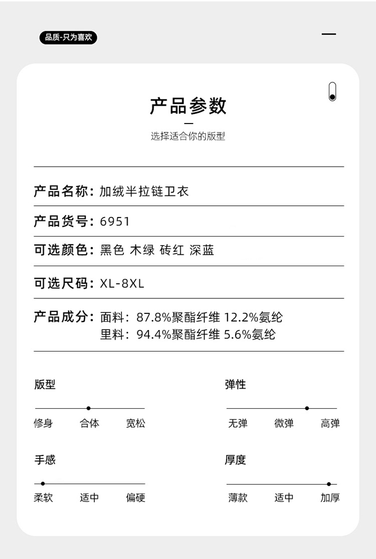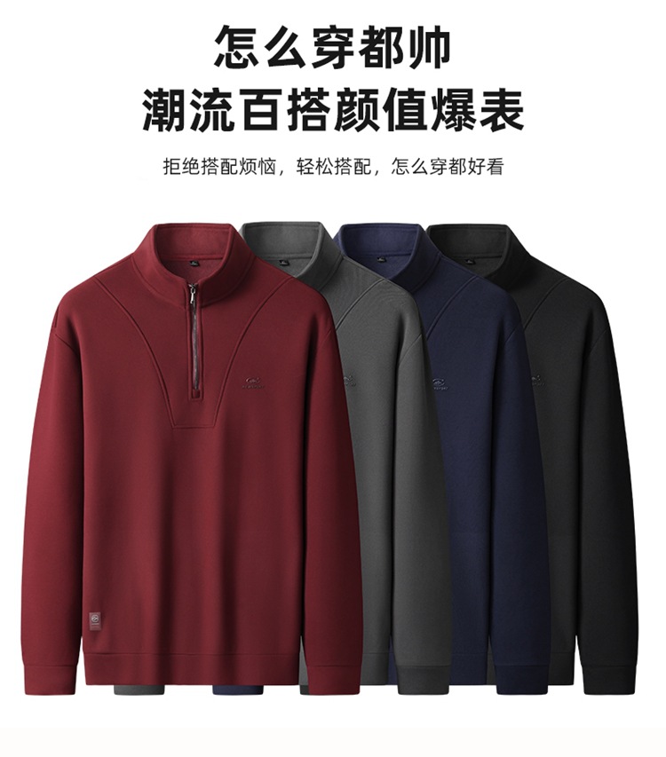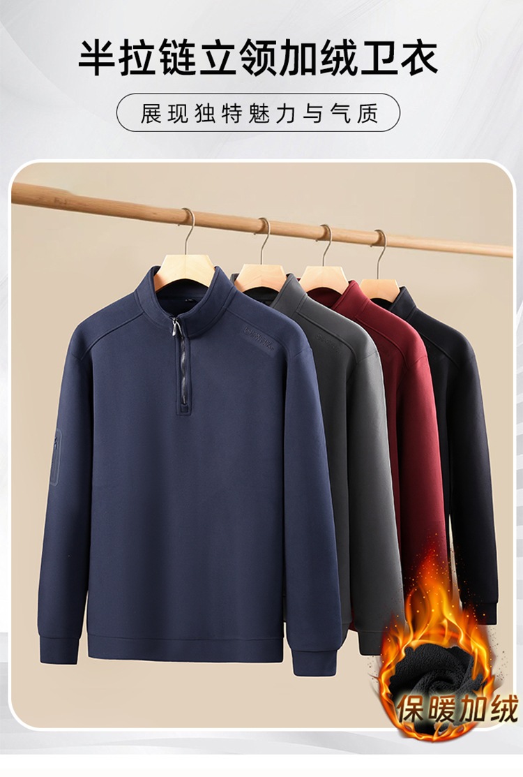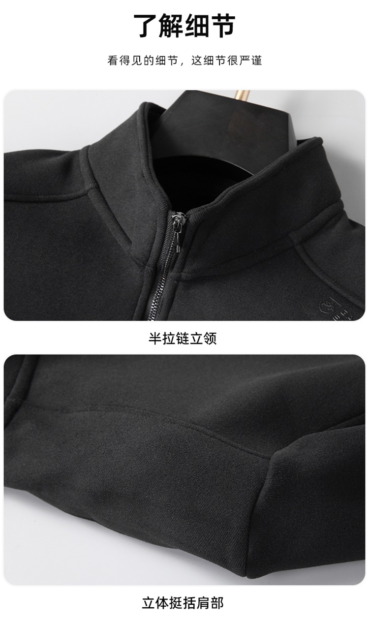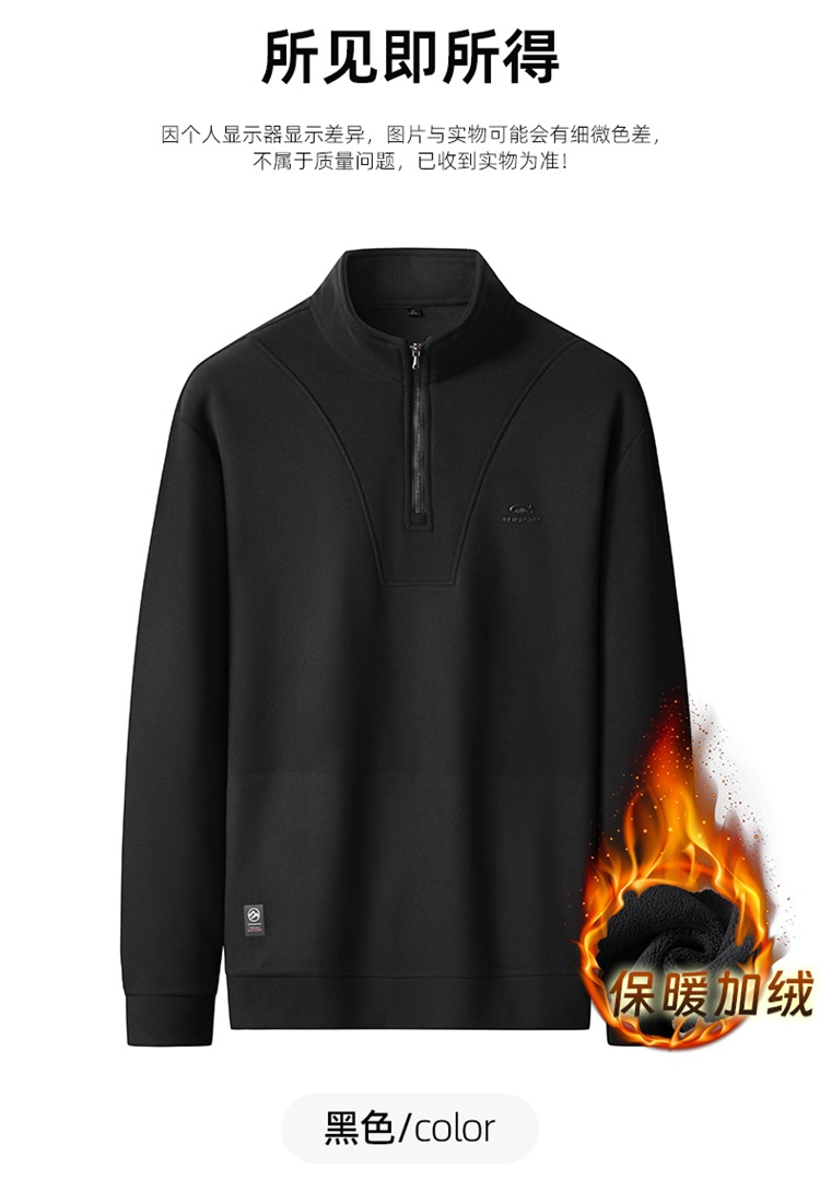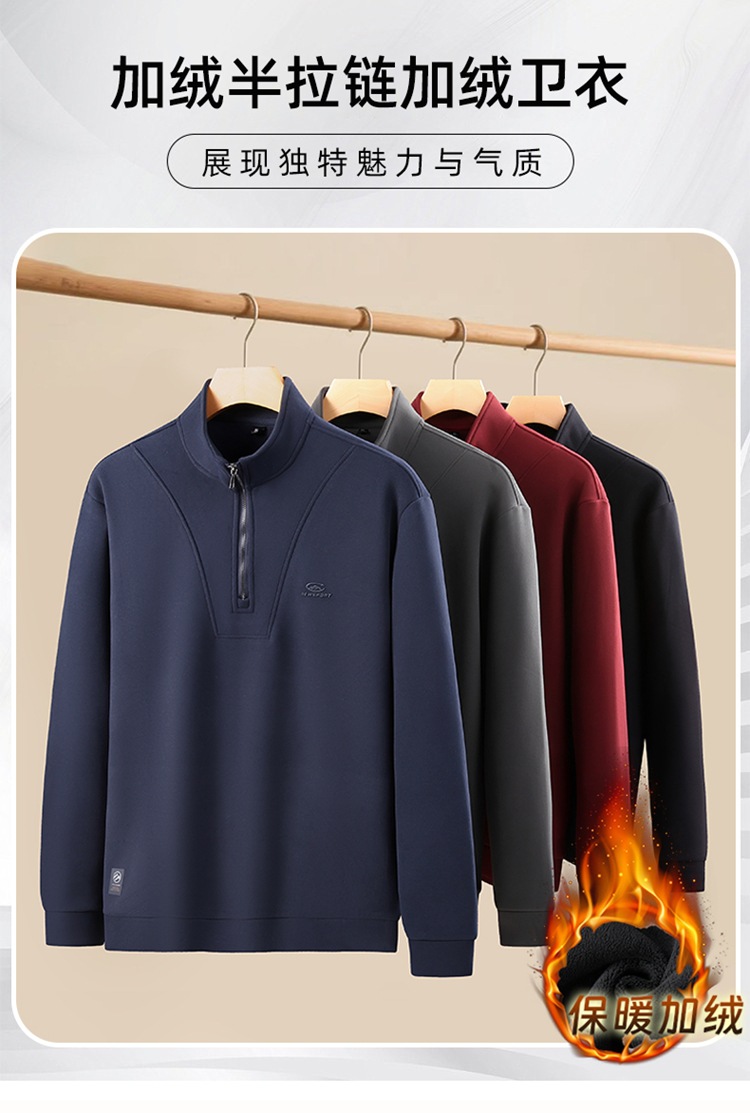 【DK】大依优型大码男装秋冬新款男士加肥加大码立领半拉链加绒卫衣男保暖衣
