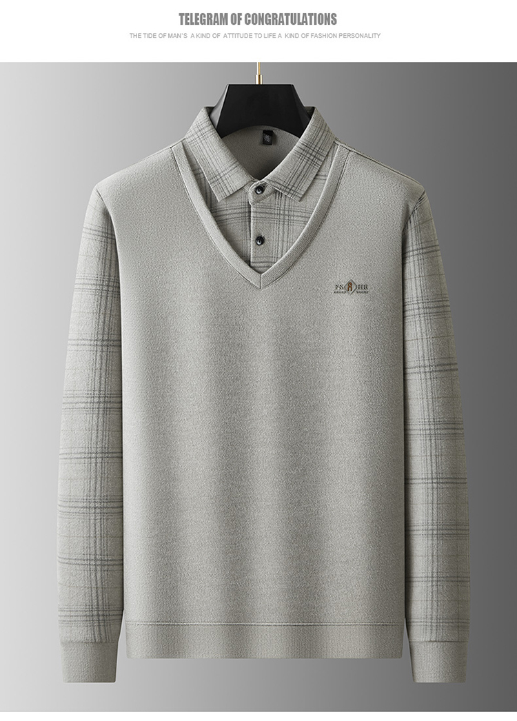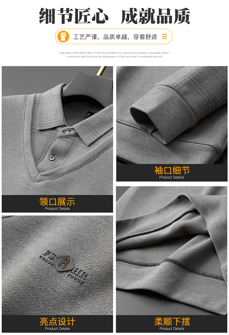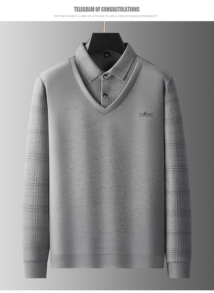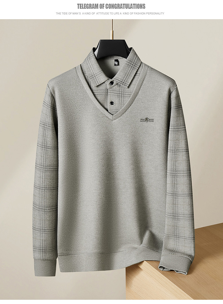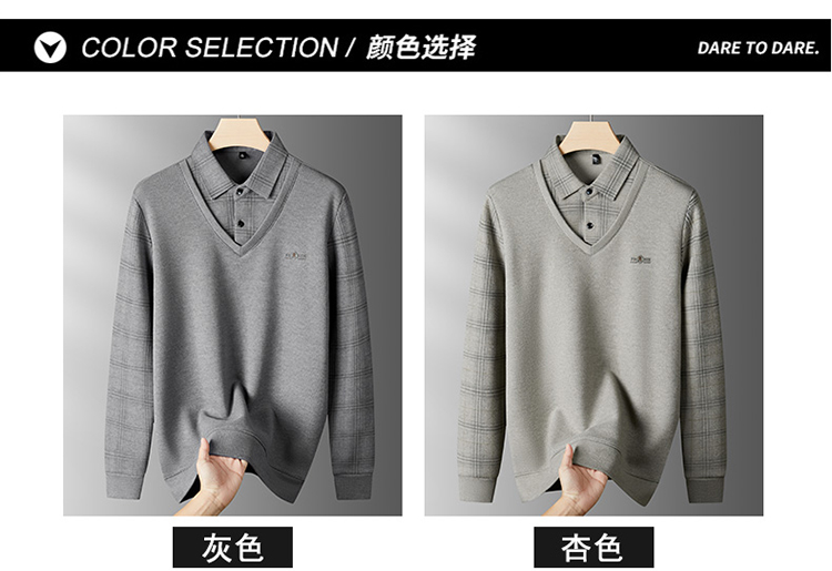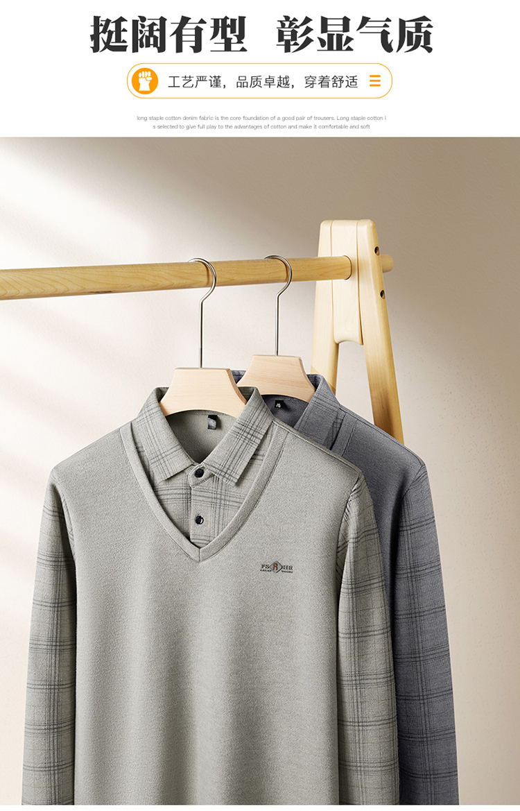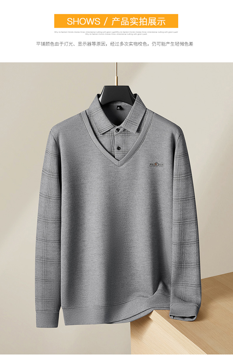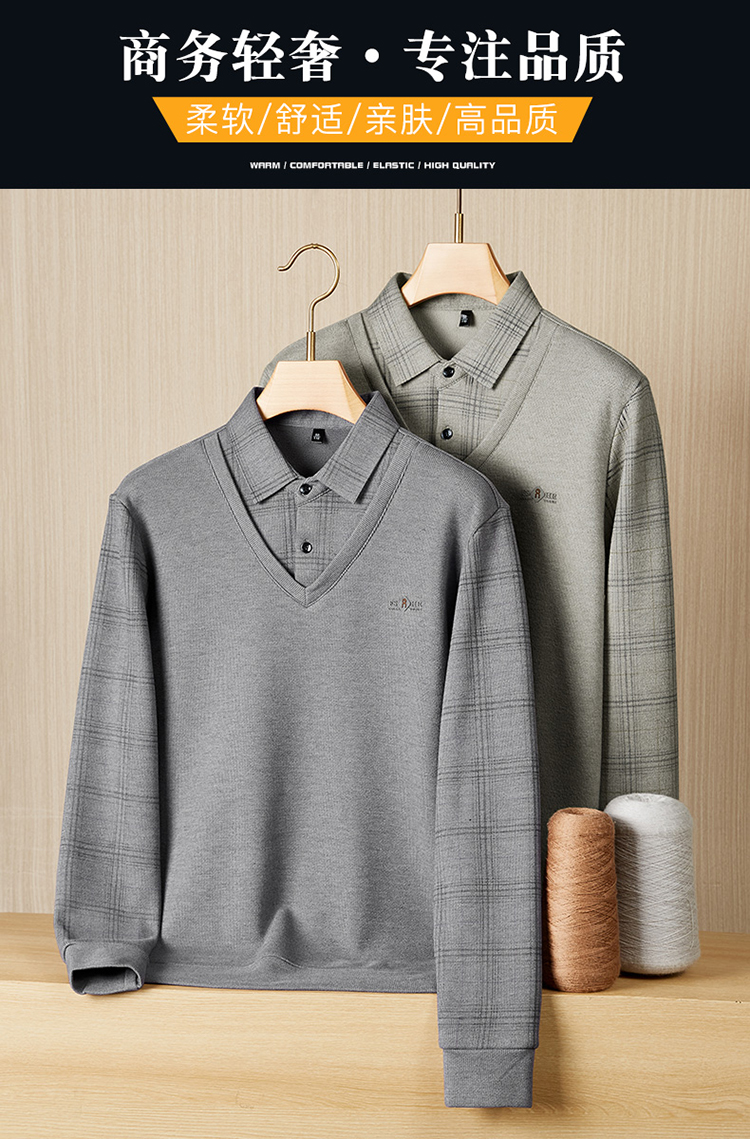 【DPF】大依优型大码加绒加厚长袖假两件Polo衫休闲加肥加大男士胖子大码内搭上衣打底衫